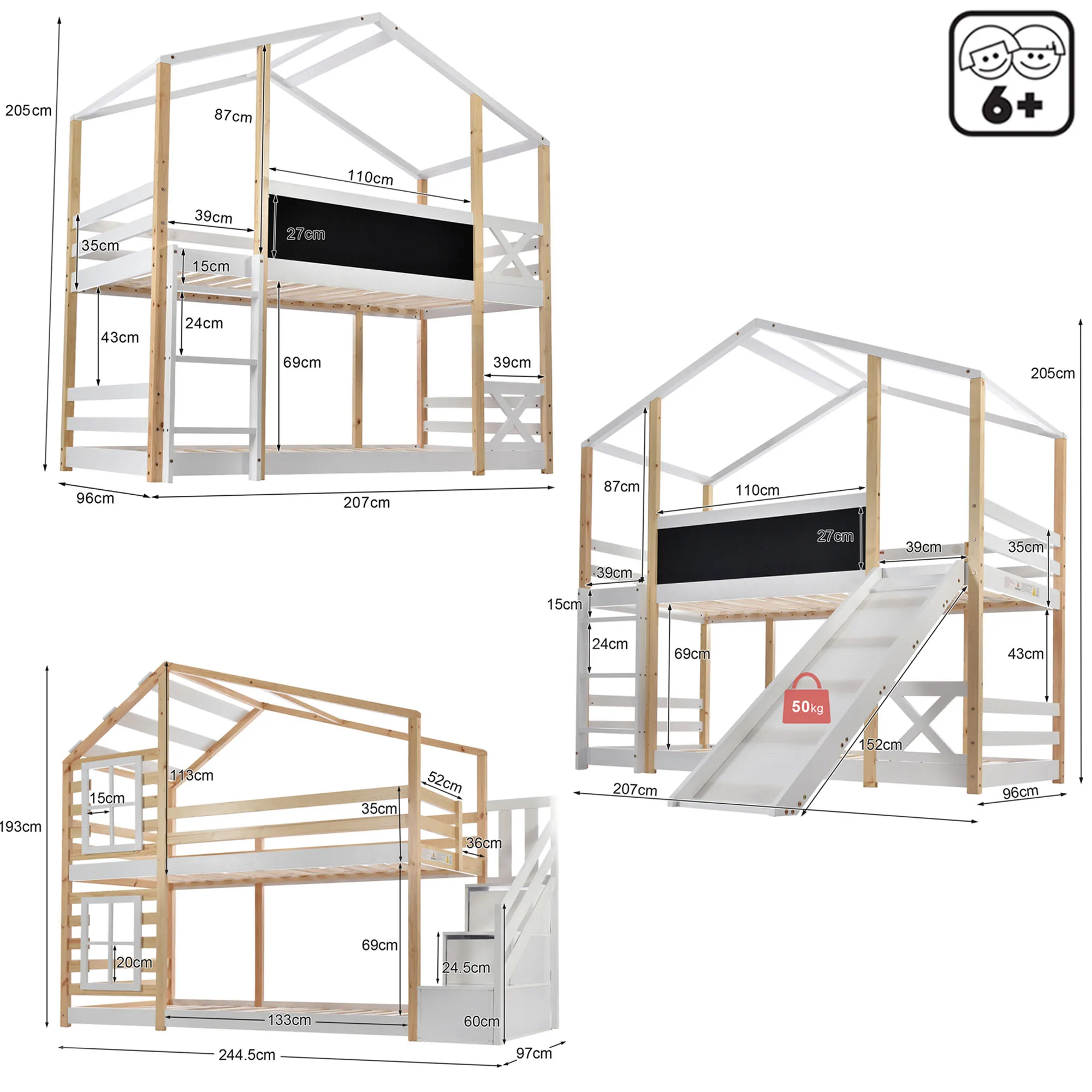 ♡SchnellansichtKinderbett, Hausbett 90 x 200 cm, Holzbett mit Brett und 2 Schubladen, Massivholz mit Zaun und Lattenrost279.39 EUREUR 516.26Heiß