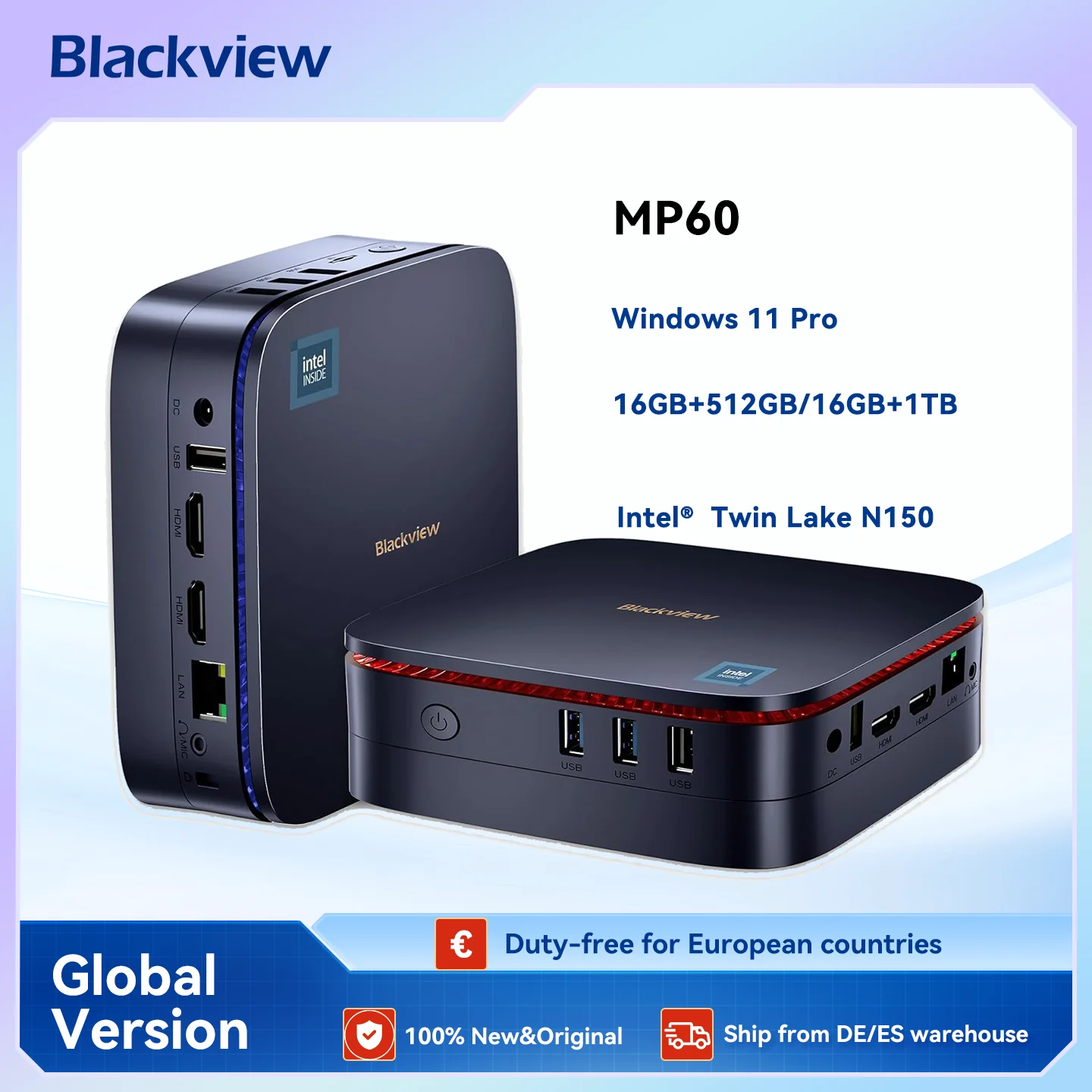 ♡SchnellansichtBlackview MP60 Mini-PC Win11 Pro, Intel Twin Lake N150, bis zu 3,60 GHz), 16 GB RAM, 1 TB M.2 SSD Mini-Computer für Büro/Zuhause221.76 EUREUR 716.75Heiß★★★★★★4.7