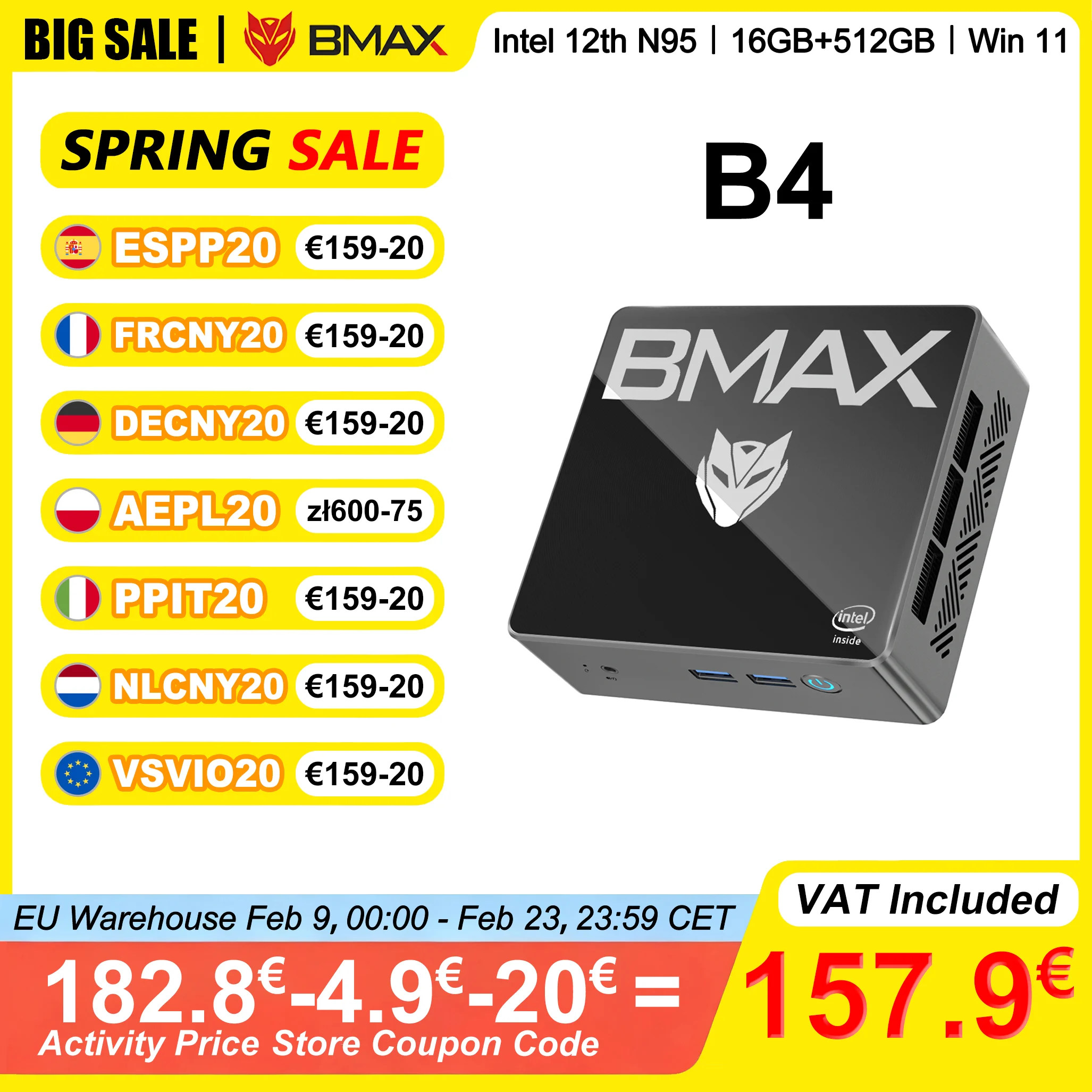 ♡SchnellansichtBMAX B4 Plus Mini-PC Windows 11-PC Intel N100 16 GB DDR4 512 GB SSD 2*HDMI 1*Typ-C unterstützt 4K@60 Hz 750 MHz Intel UHD-Grafik161.42 EUREUR 372.85Heiß★★★★★★4.9