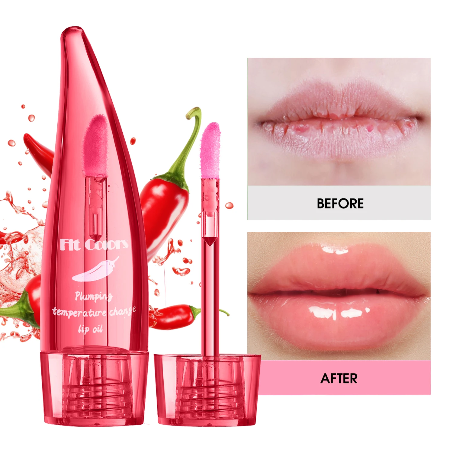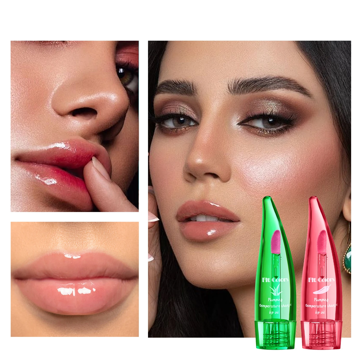 Aufpolsterndes Lippenöl mit Aloe Vera und Chili | Temperaturaktivierter Farbwechsel | Feuchtigkeitsspendender und feuchtigkeitsspendender Lipgloss für vollere Lippen - TopDealBox