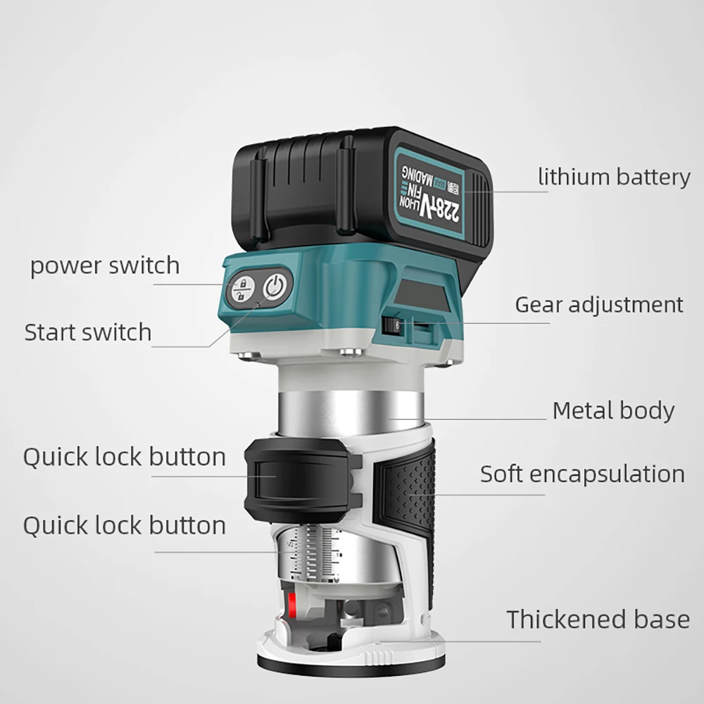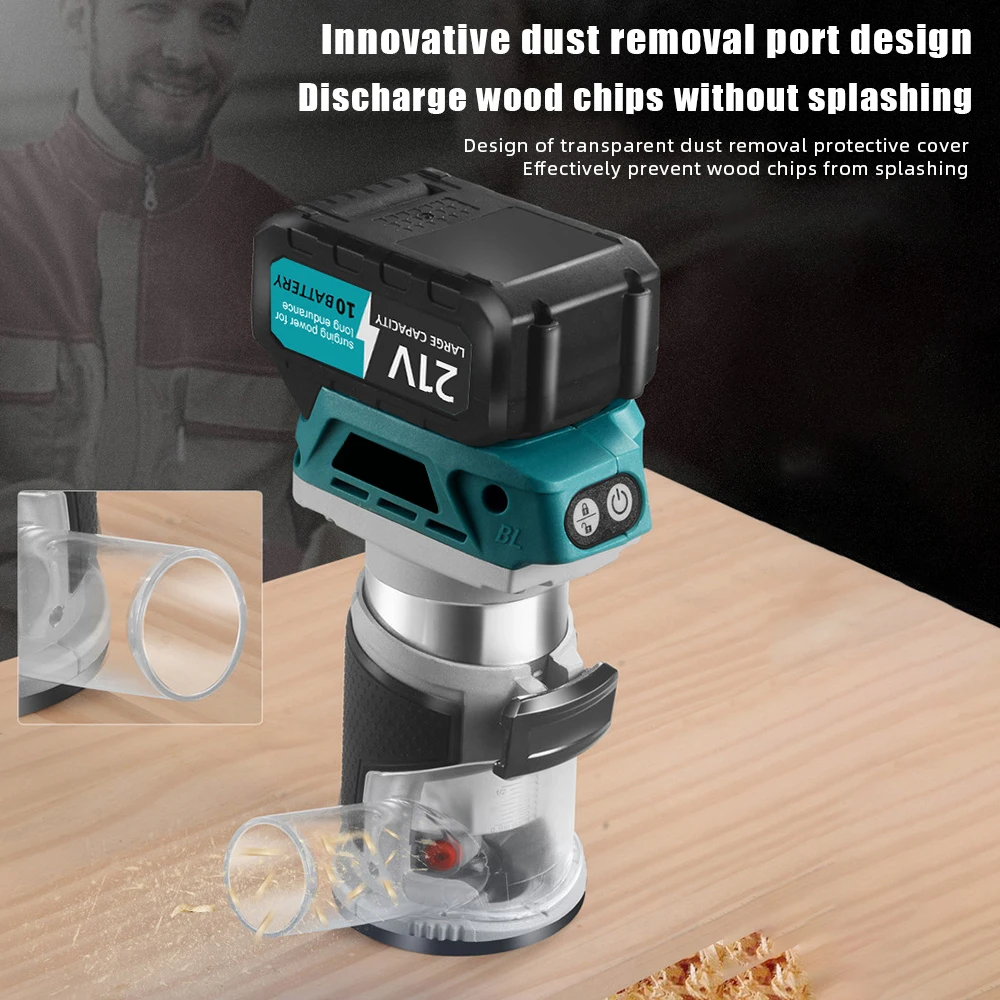 Bürstenloser Holzfräser, Holzschneider, 6 Geschwindigkeiten, elektrische Handholzbearbeitung, Gravur, Schlitzen, Elektrowerkzeug für Makita 18 V Akku - TopDealBox