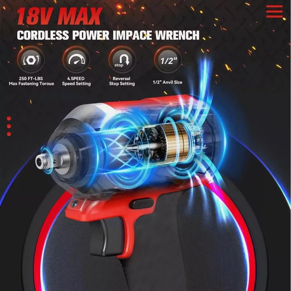 Bürstenloser Schlagschrauber, 500 Nm, Elektroschrauber, 1/2 Zoll, Reparatur-Akku-Schraubendreher, 4 Gänge, Elektrowerkzeuge für Milwaukee 18 V Akku - TopDealBox
