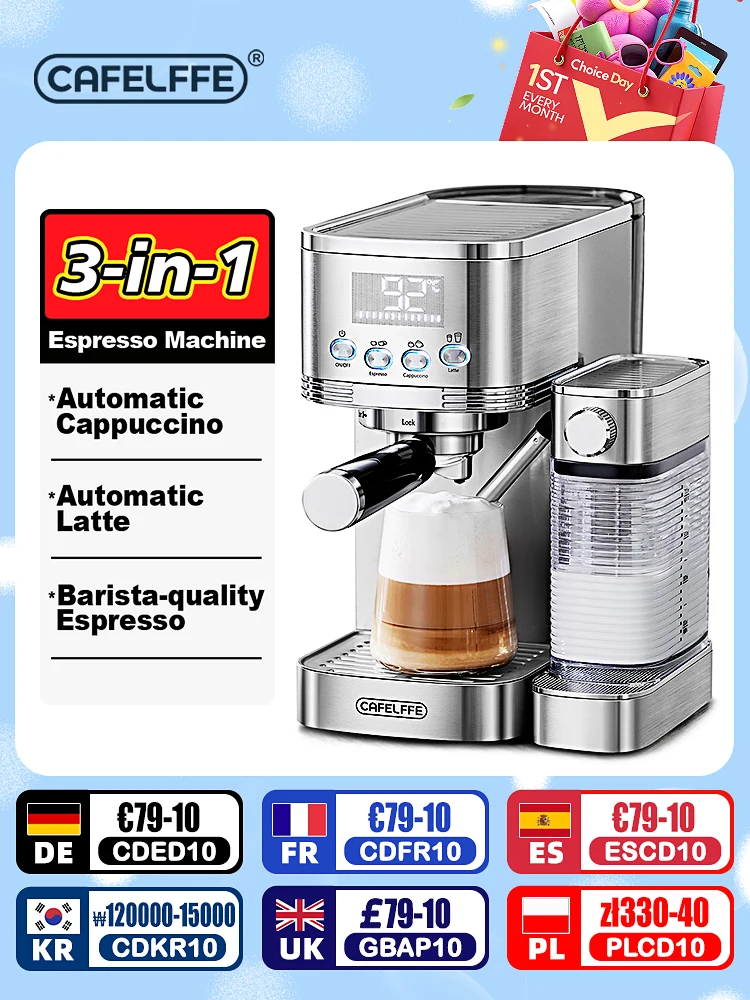 Cafelffe 3 in1 automatische Kaffee maschine Cafeteria Cappuccino Latte Espresso maschine voll automatische Milchschaum Edelstahl - TopDealBox