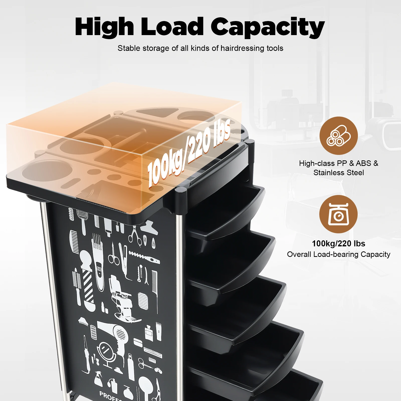 Salonwagen, Friseurwagen mit 5 Schubladen, Haartrocknerhalter und Rollen, Haartrocknerhalter, ordentlicher und organisierter Arbeitsbereich - TopDealBox
