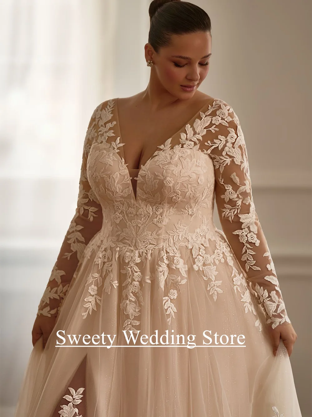 ♡SchnellansichtBescheidenes Brautkleid in Übergröße mit langen Ärmeln für die Braut, maßgeschneidert, V-Ausschnitt, Spitze, Glitzer, Spitze, A-Linie, lange Schleppe, Korsett-Brautkleider150.69 EUREUR 2182.15Heiß★★★★★5.0
