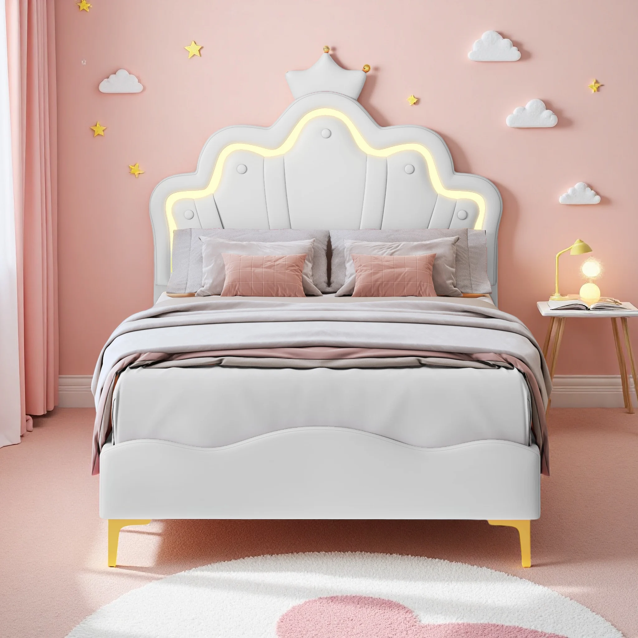 ♡SchnellansichtRosahqnda Kinderbett Einzelbett 90/140x200cm Mädchenbett mit LED-Beleuchtung, Crown Shell Heabboard Einzelbett Rest ohne Matratze135.11 EUREUR 289.56Heiß★★★★★★4.9