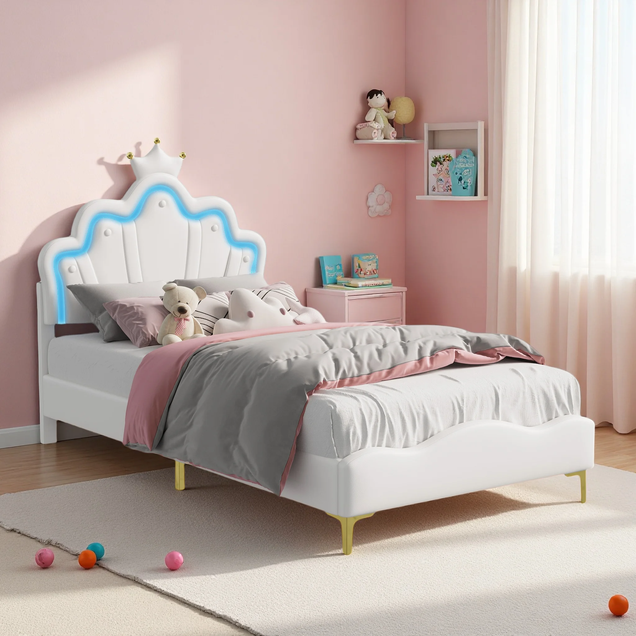 ♡SchnellansichtRosahqnda Kinderbett Einzelbett 90/140x200cm Mädchenbett mit LED-Beleuchtung, Crown Shell Heabboard Einzelbett Rest ohne Matratze177.96 EUREUR 382.30Heiß★★★★★★4.9