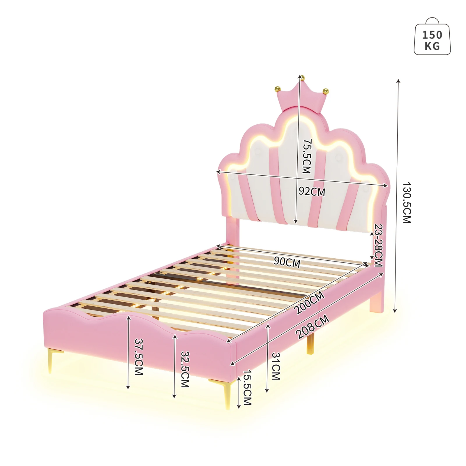♡SchnellansichtComan lai Einzel bett 90 × 200cm Kinder bett rahmen mit LED-Licht und kronen förmigem Kopfteil, PU-Leder gepolstertes Bett, weiß130.41 EUREUR 230.30Heiß