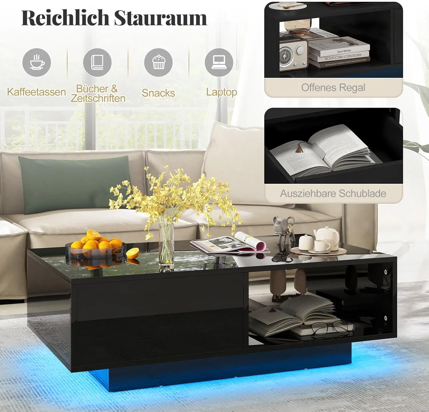 ♡SchnellansichtYITAHOME Lift-Top-Couchtisch – rechteckiges, modernes Design mit 16-farbiger LED-Beleuchtung und 2 Schubladen, erhöhte beleuchtete Oberfläche98.99 EUREUR 242.92Heiß★★★★★★4.9