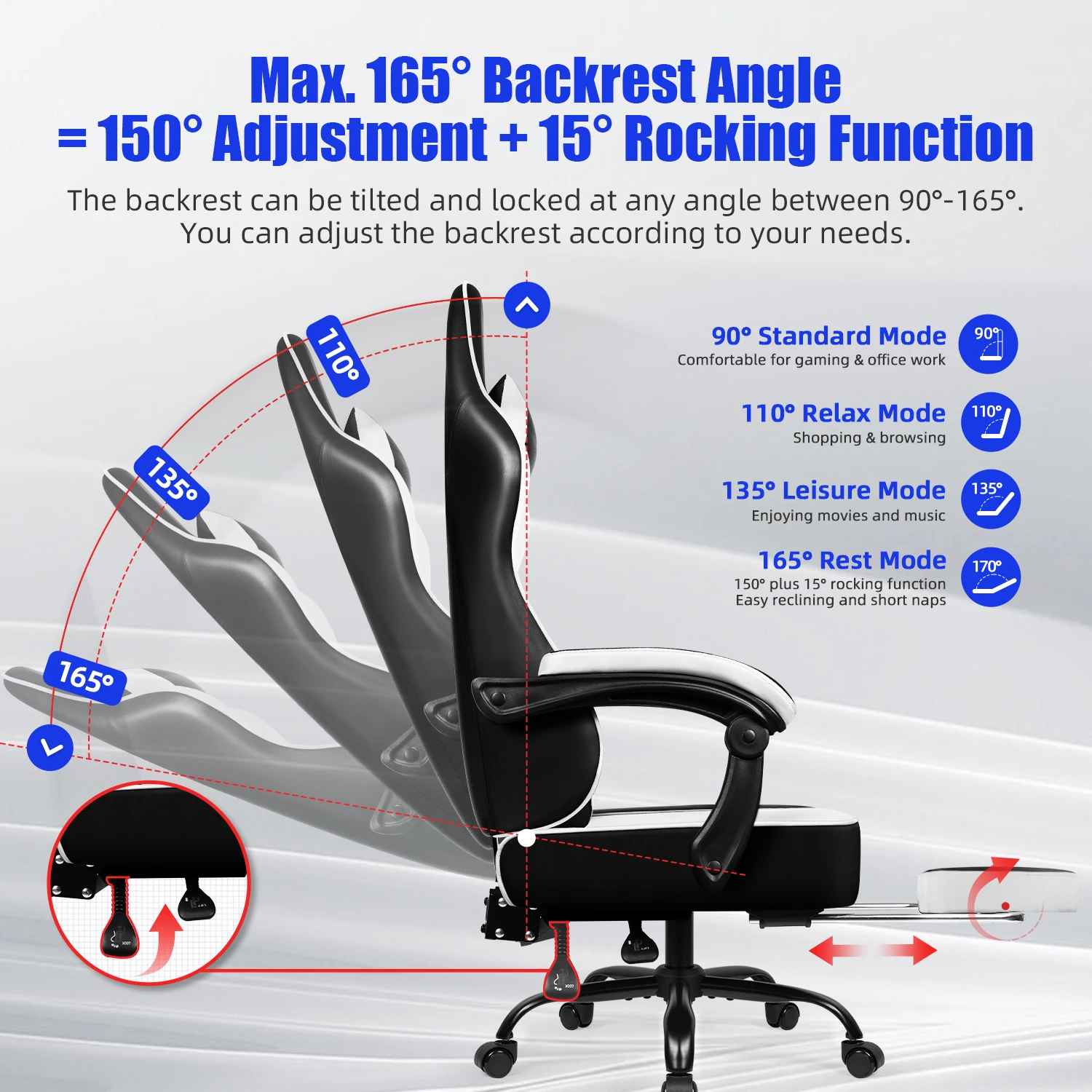 ♡SchnellansichtDaccormax Ergonomischer Gaming-Stuhl mit verstellbarer Lordosenstütze und Kopfstütze, Design mit hoher Rückenlehne + faltbarer Fußstütze für PC-Gamer67.99 EUREUR 1069.44Heiß★★★★★★4.8