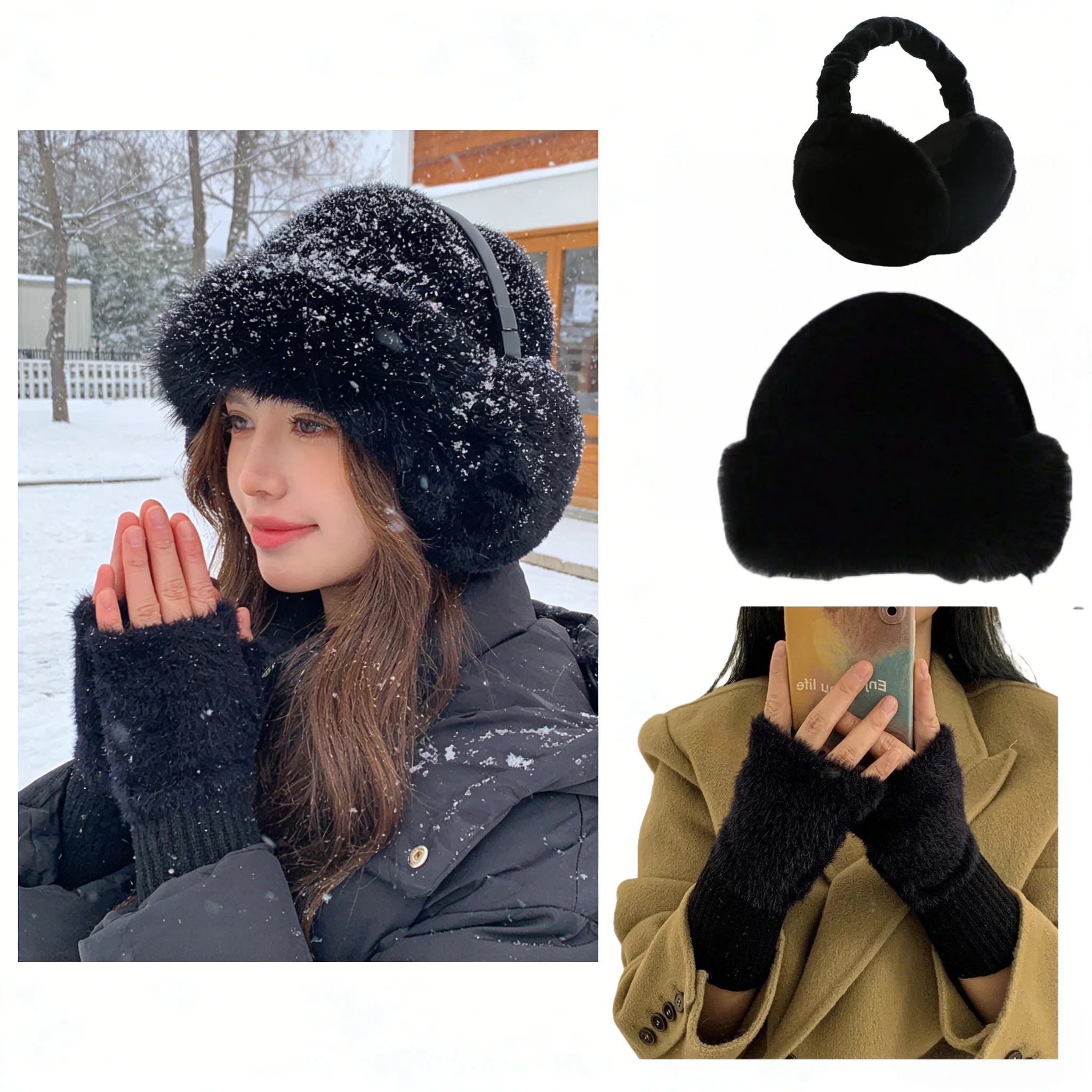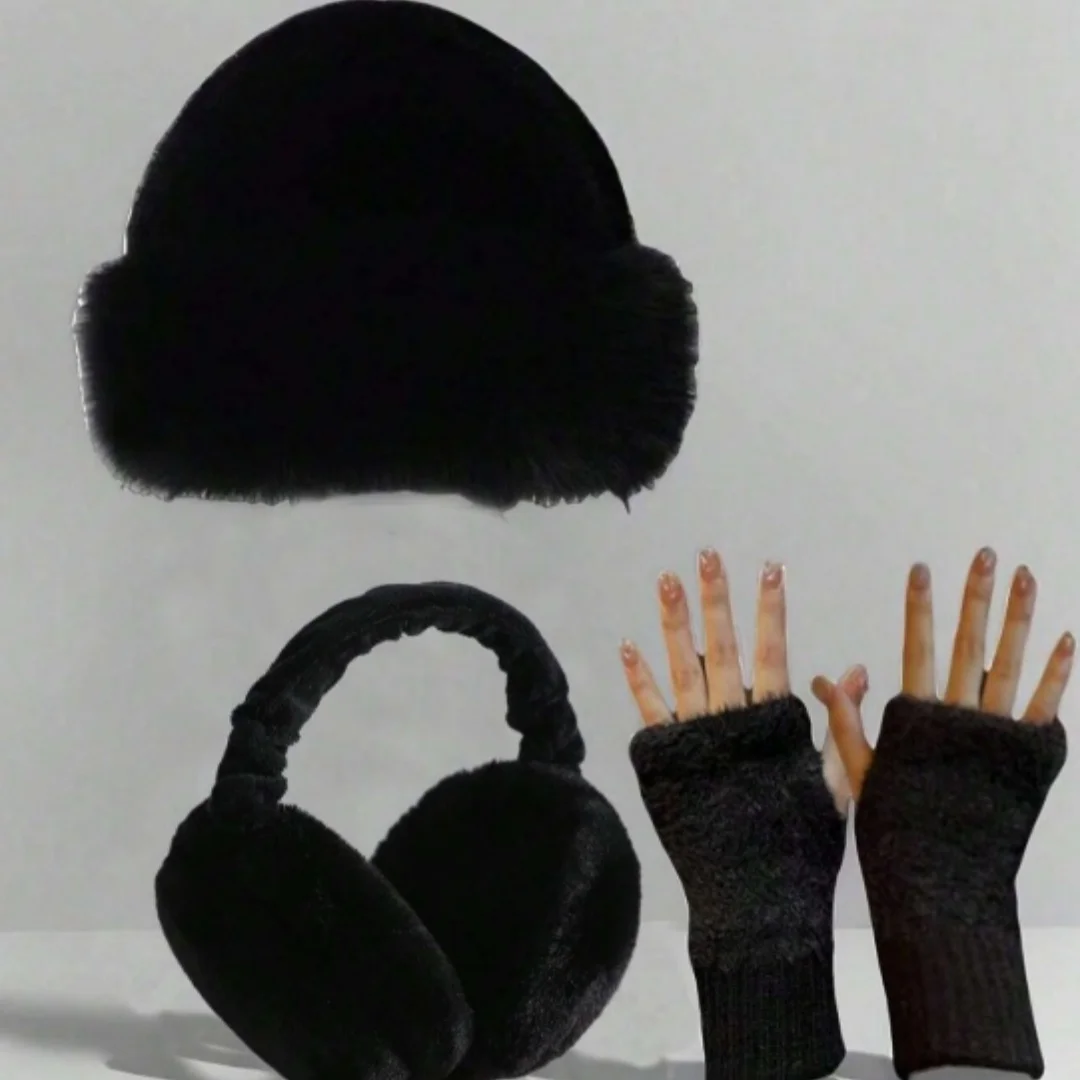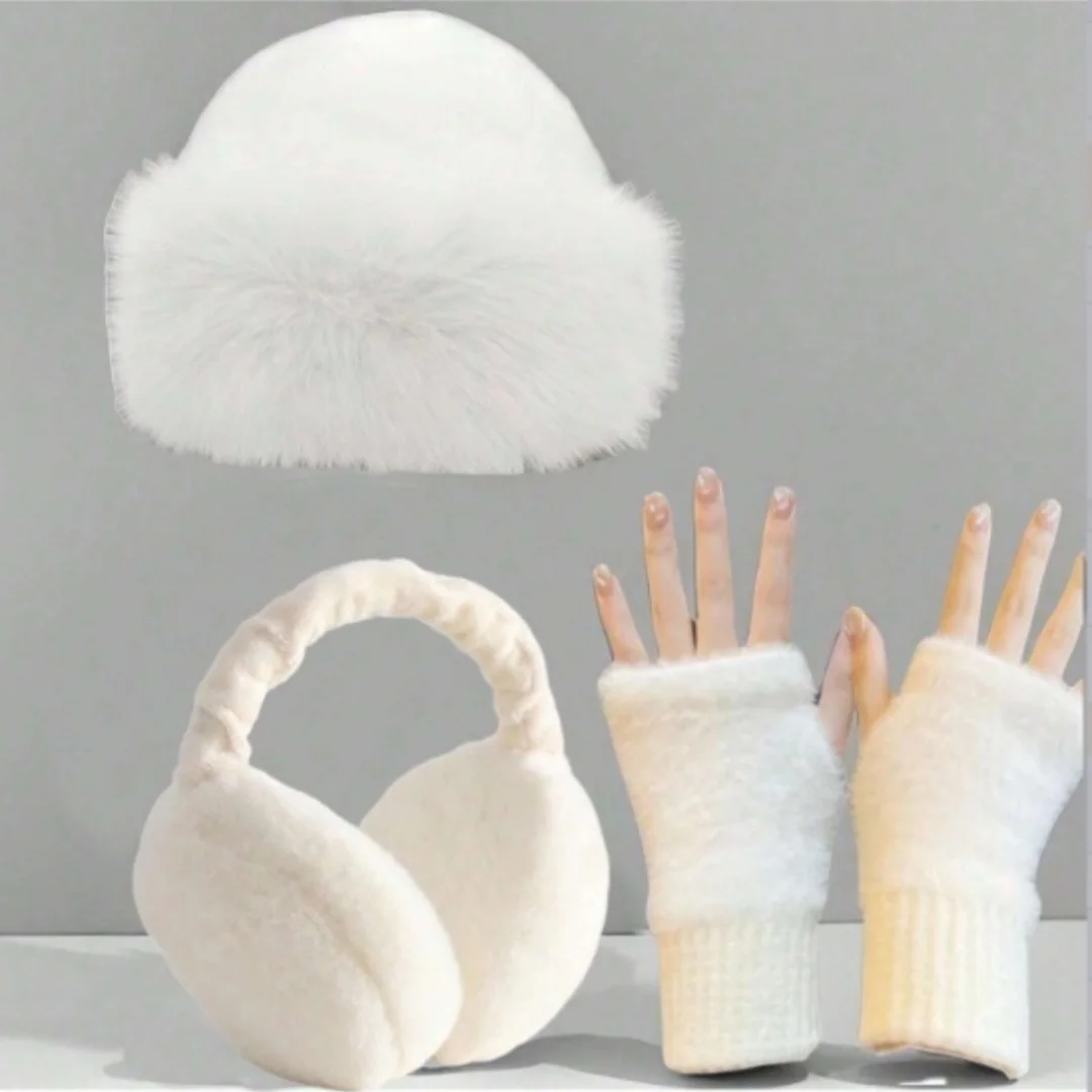 Damen-Set aus Mütze, Ohrenschützern und Nackenwärmer, dreiteilig, mit Winterfleece gefüttert, verdickt, warm, modisch, geeignet für den täglichen Weg zur Arbeit und Outdoor-Aktivitäten - TopDealBox