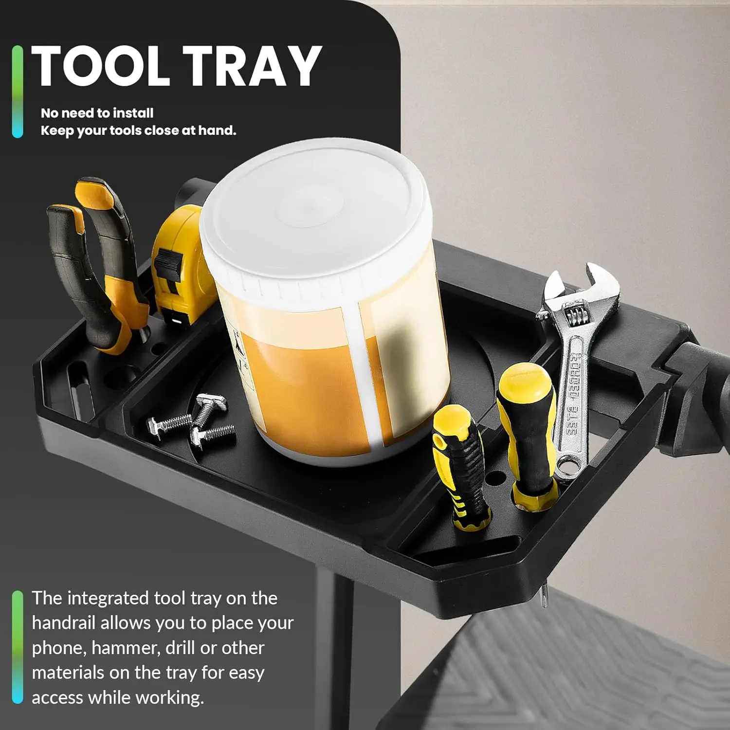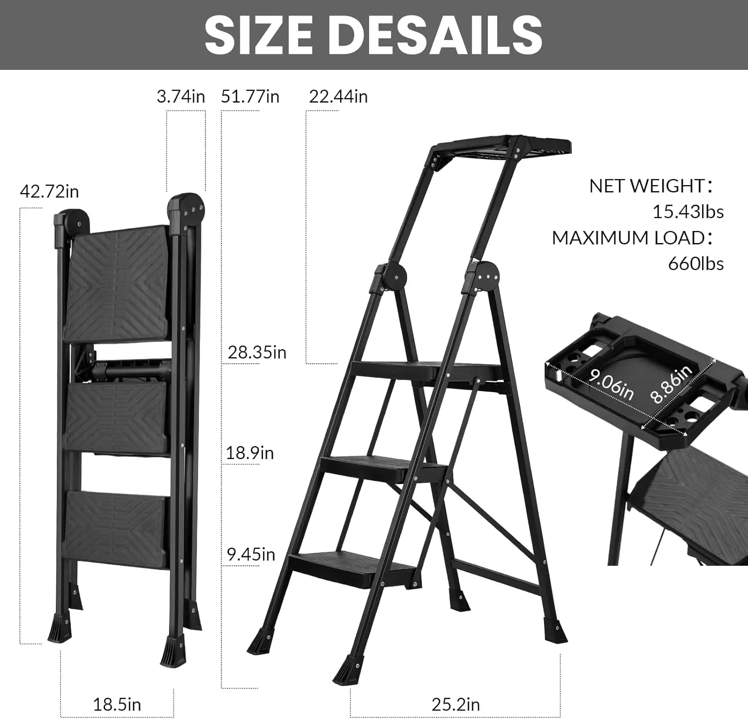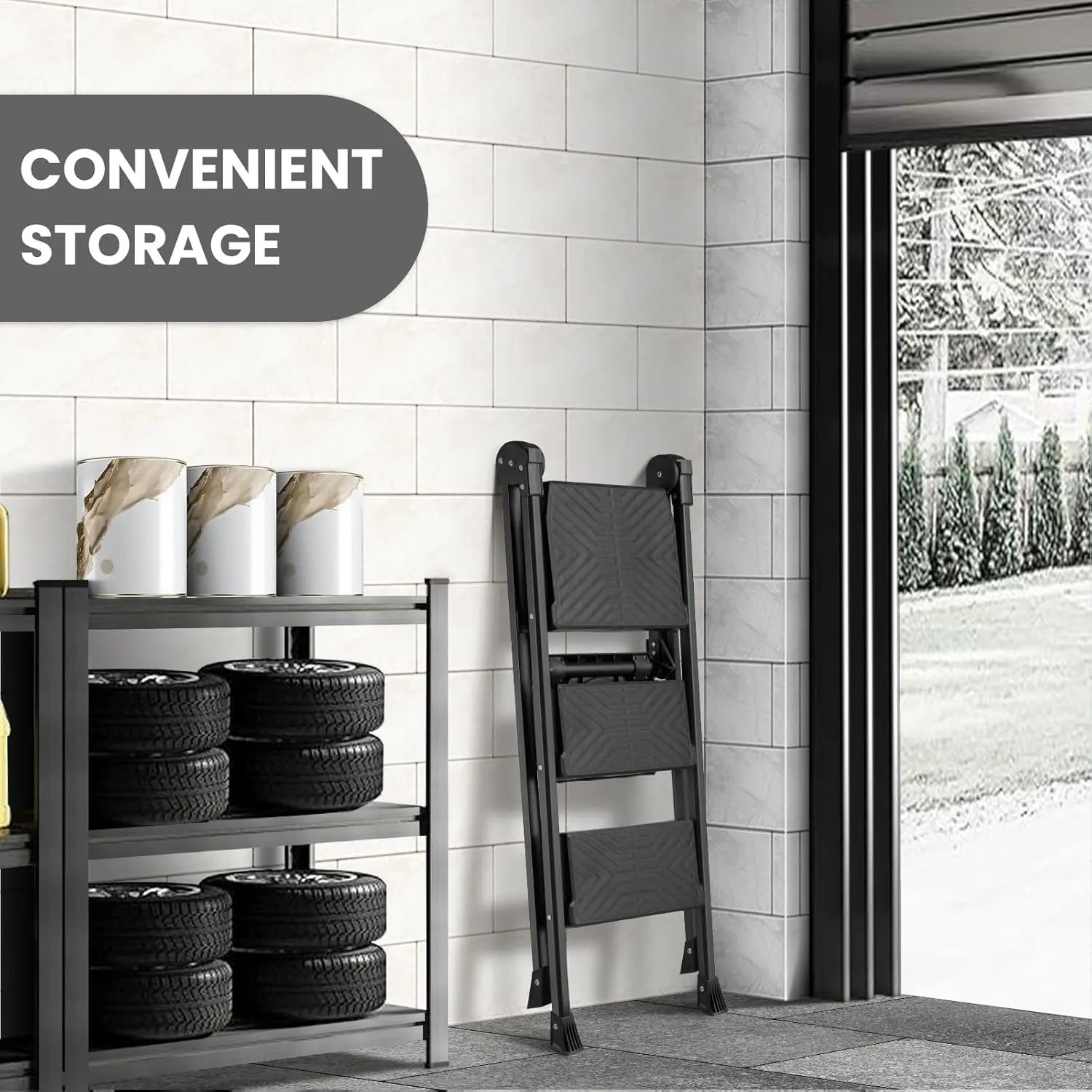 Dreistufige Leiter, Klapptritt, Stehleiter mit drehbarem Handlauf & Werkzeugablage, Haushaltsleiter bis 300 kg belastbar - TopDealBox