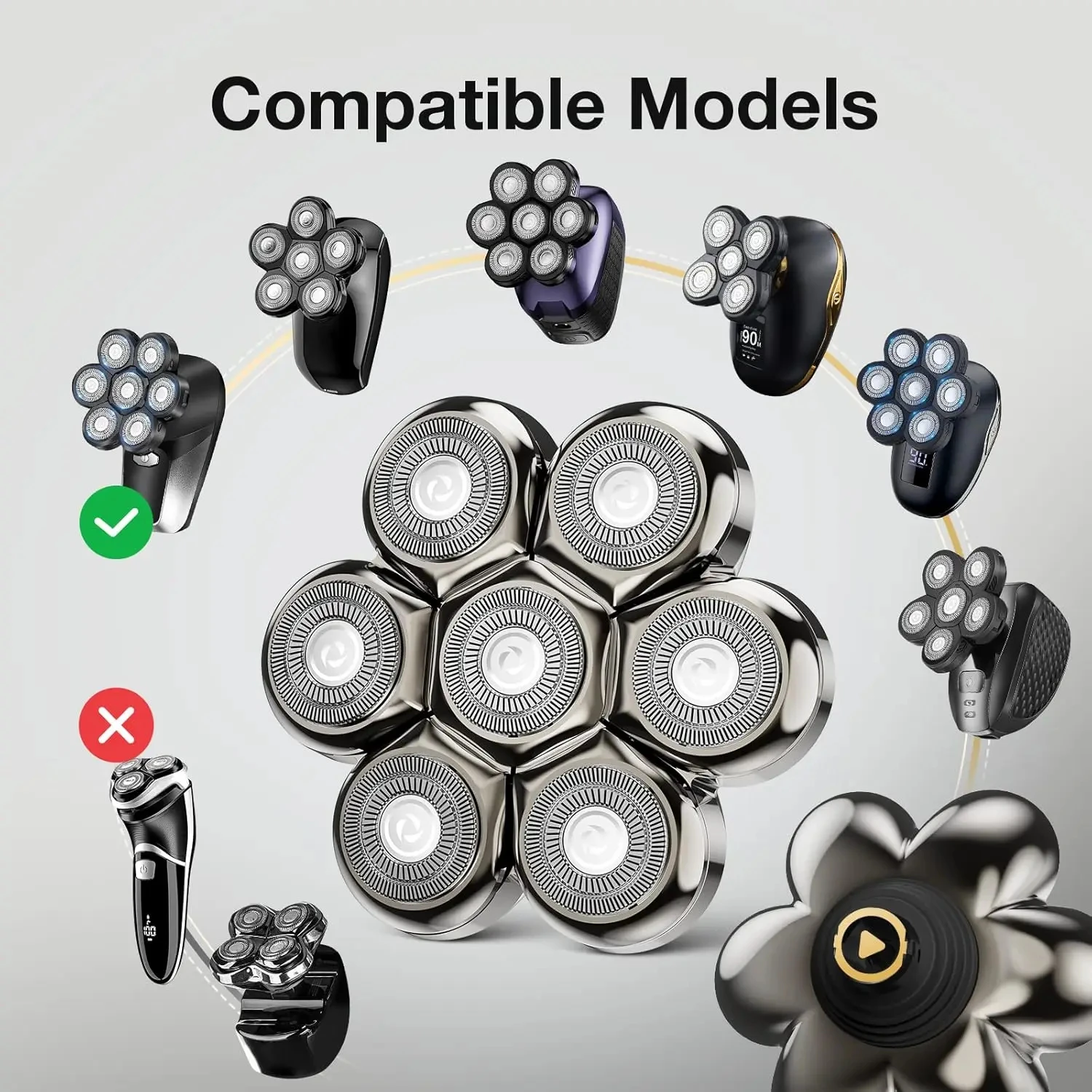 Ersatz für Kopfrasierer, 7-köpfe, Barthaarersatz für Rasierer für Kopf für Männer, universell - TopDealBox