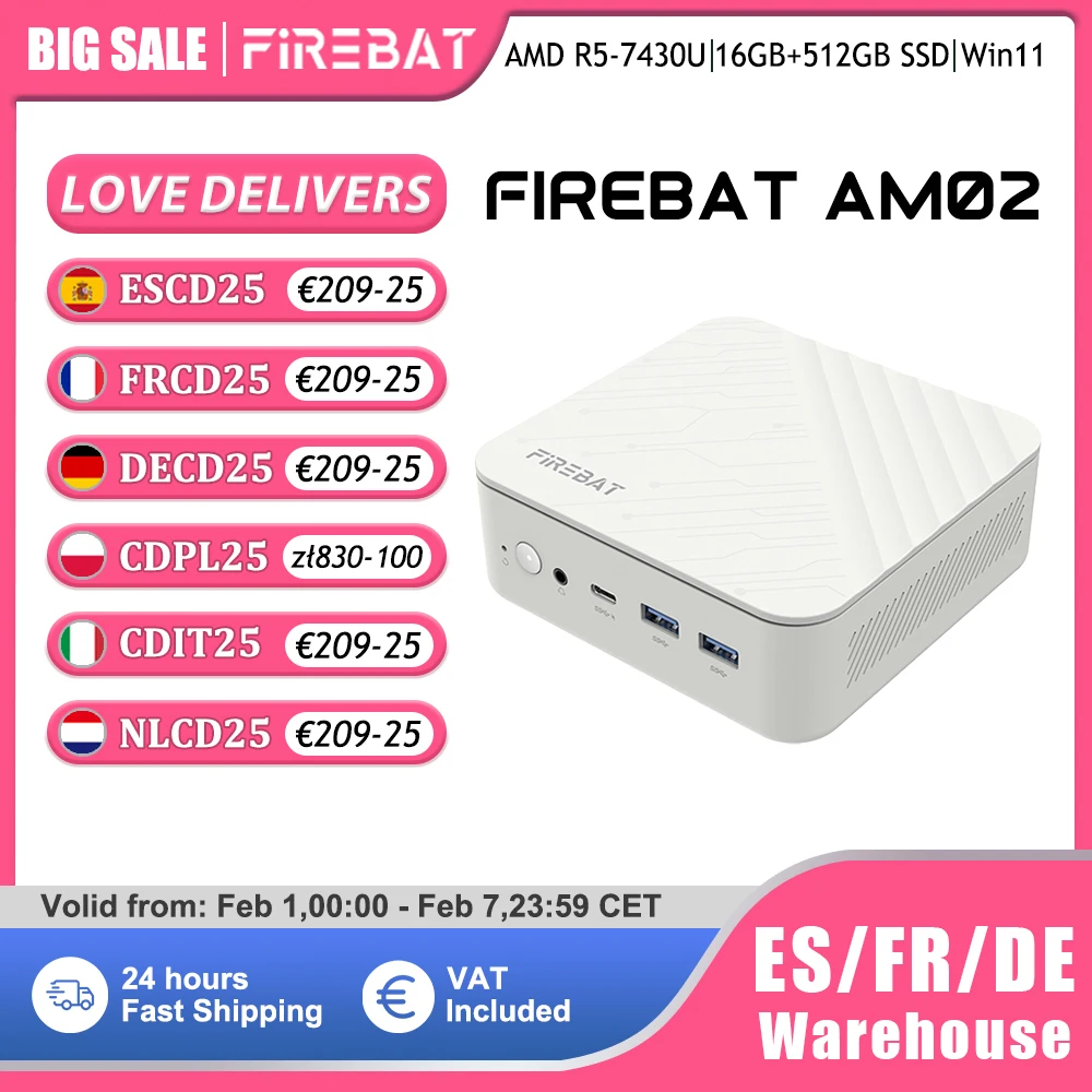 ♡SchnellansichtFIREBAT AM02 MINI-PC AMD Ryzen 5 7430U Windows 11 Mini-PC 16 GB DDR4 3200 MHz 512 GB SSD WLAN 6 BT5.2 HDMI 2.1 Desktop-Computer269.40 EUREUR 881.45Heiß★★★★★★4.9
