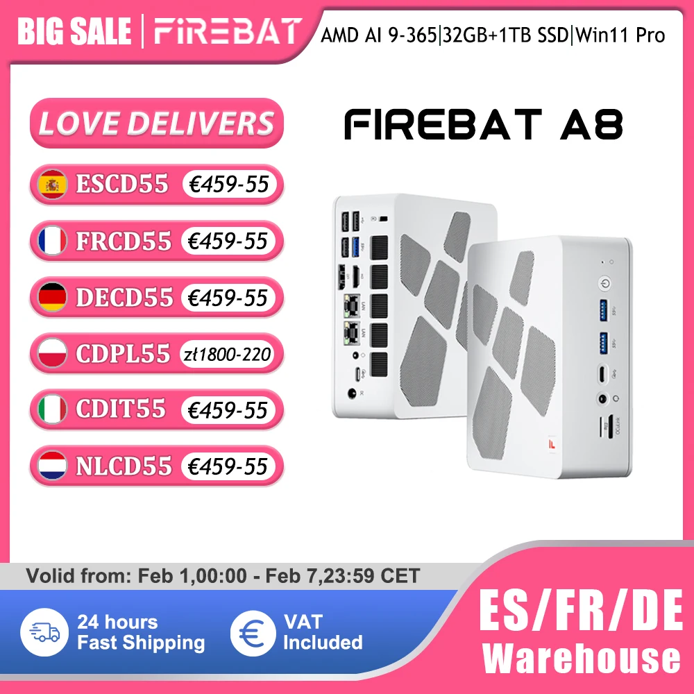 ♡SchnellansichtFirebat Mini-PC A8 Gamer mit OCuLink AMD Ryzen AI 9 365 USB4*2 DDR5*2 PCIe4*2 32 GB 1 TB Windows 11 Pro WiFi6 Gaming-Computer682.05 EUREUR 1918.45Heiß★★★★★5.0