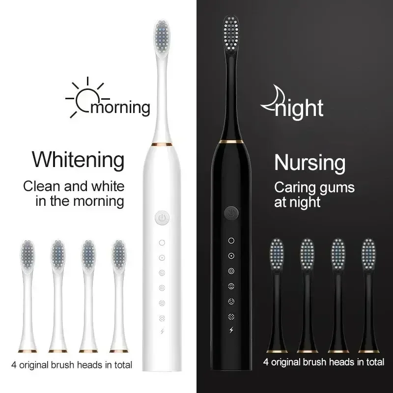 Elektrische Ultraschall-Zahnbürste, sechs Geschwindigkeitsmodi, für Zuhause, weiches Haar, USB-Aufladung, wasserdicht, Zahnreiniger für Erwachsene, automatisches Paar-Set - TopDealBox