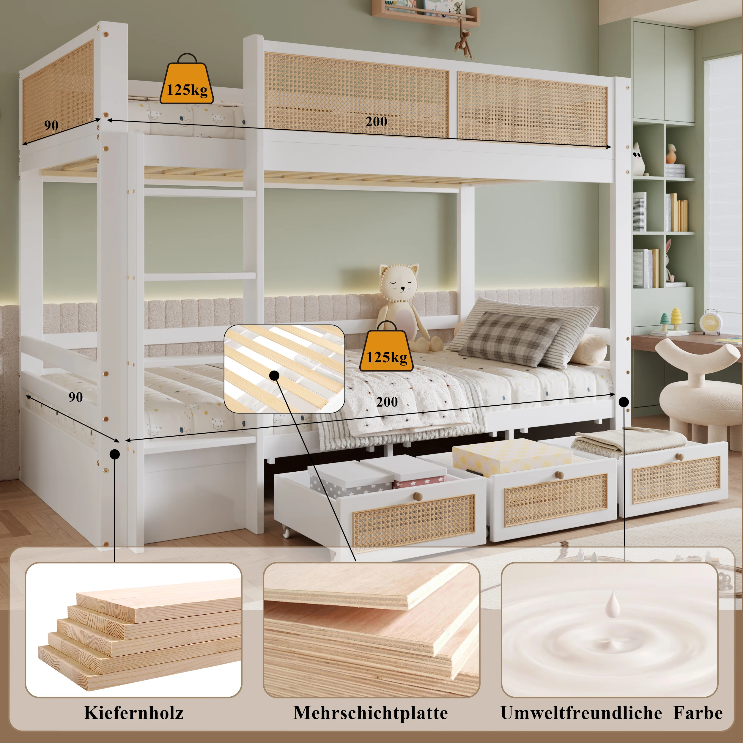 ♡SchnellansichtEtagenbett mit Fallschutzgitter, 3 Schließfächer In Der Treppe, Massivholz587.42 EUREUR 1119.14Heiß★★★★★5.0