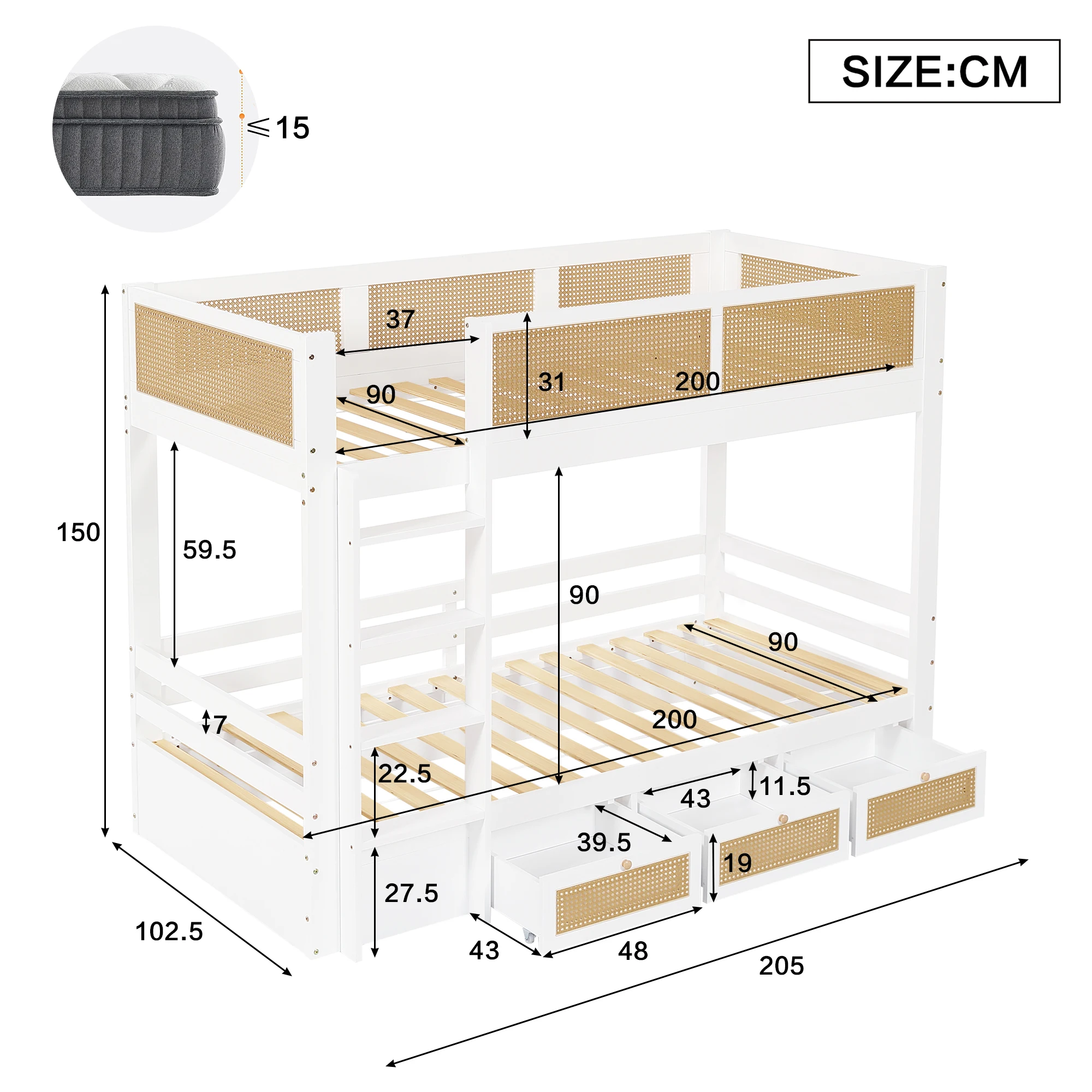 ♡SchnellansichtEtagenbett mit Regalen und dreistufiger, rechtwinkliger Leiter, Stauraum-Holzbett, Bettrahmen aus Massivholz, Weiß, 90x200 cm256.39 EUREUR 531.14Heiß★★★★★1.0