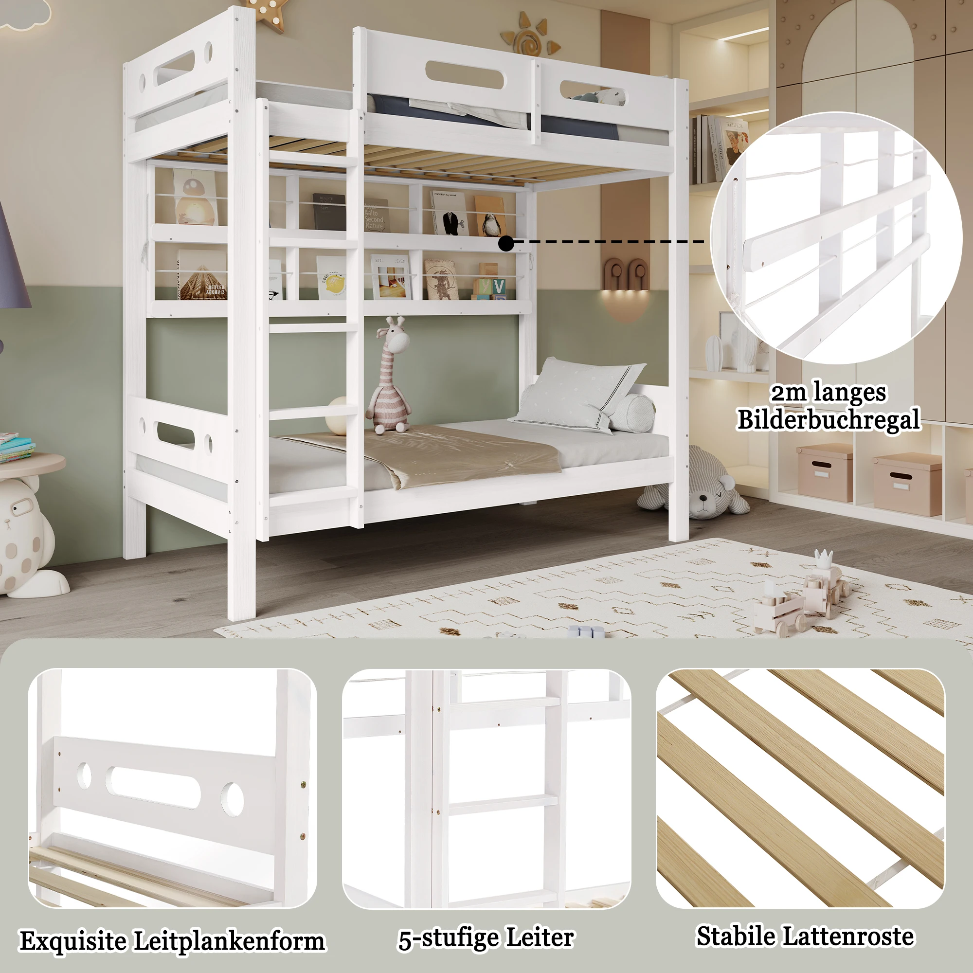 ♡SchnellansichtEtagenbett mit Regalen und dreistufiger, rechtwinkliger Leiter, Stauraum-Holzbett, Bettrahmen aus Massivholz, Weiß, 90x200 cm256.39 EUREUR 531.14Heiß★★★★★1.0