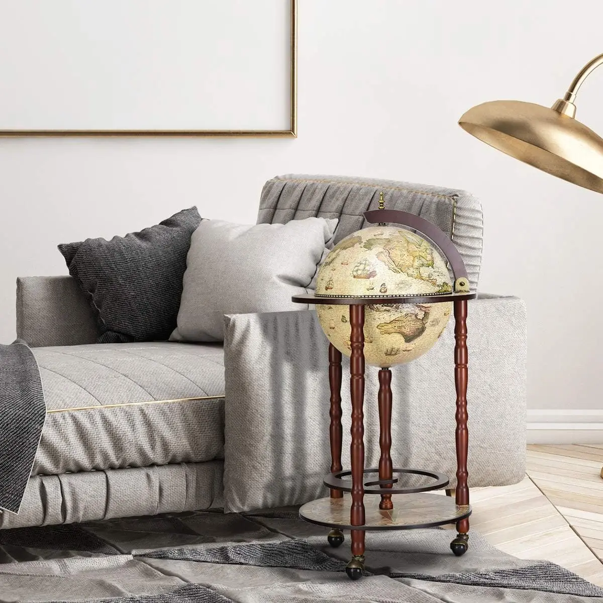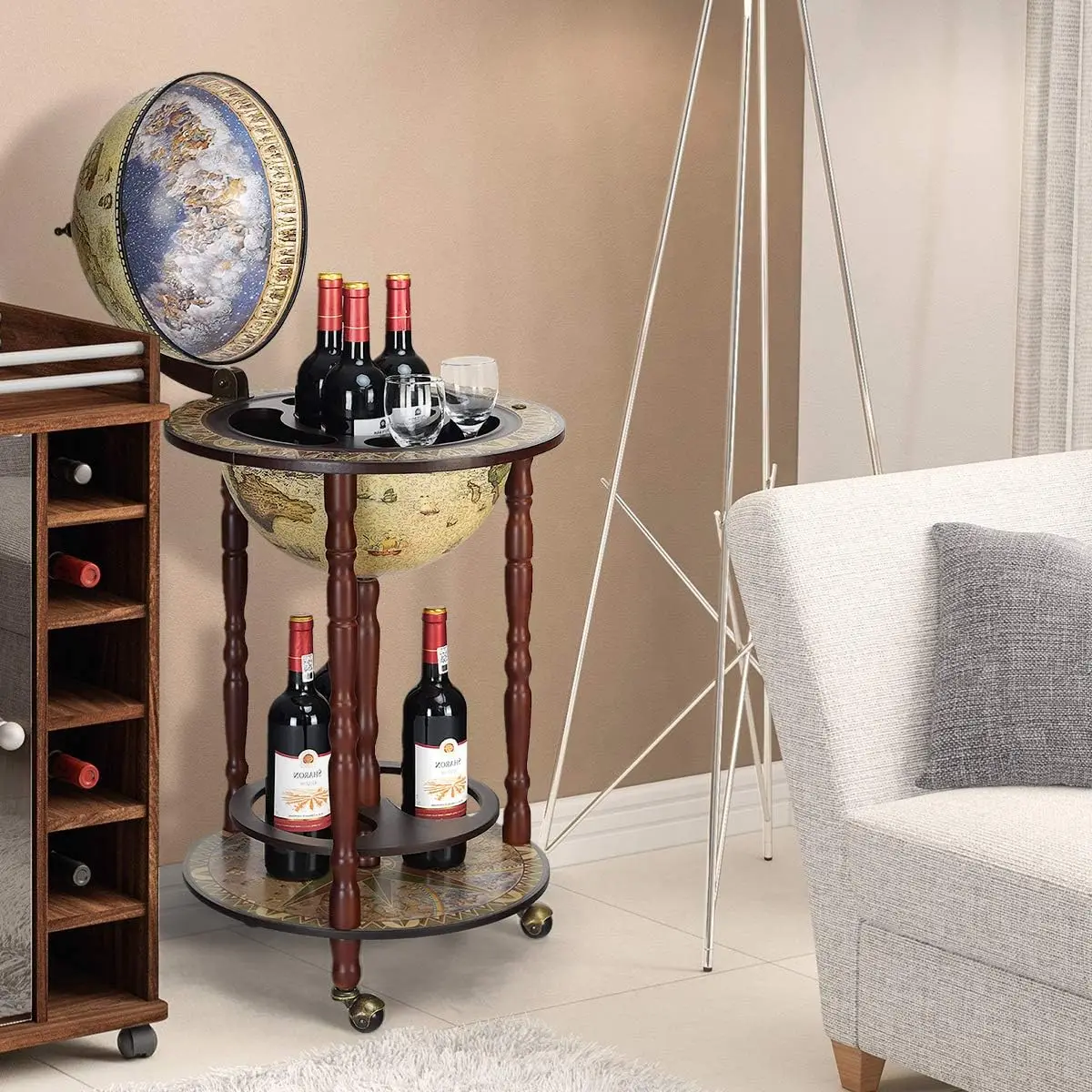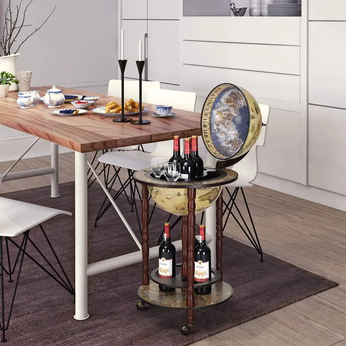 Eukalyptus Holz Globus Bar, Holz Globus Weinst änder, auf Rädern montiert, alten Stil, 45x45x88cm, weiß - TopDealBox