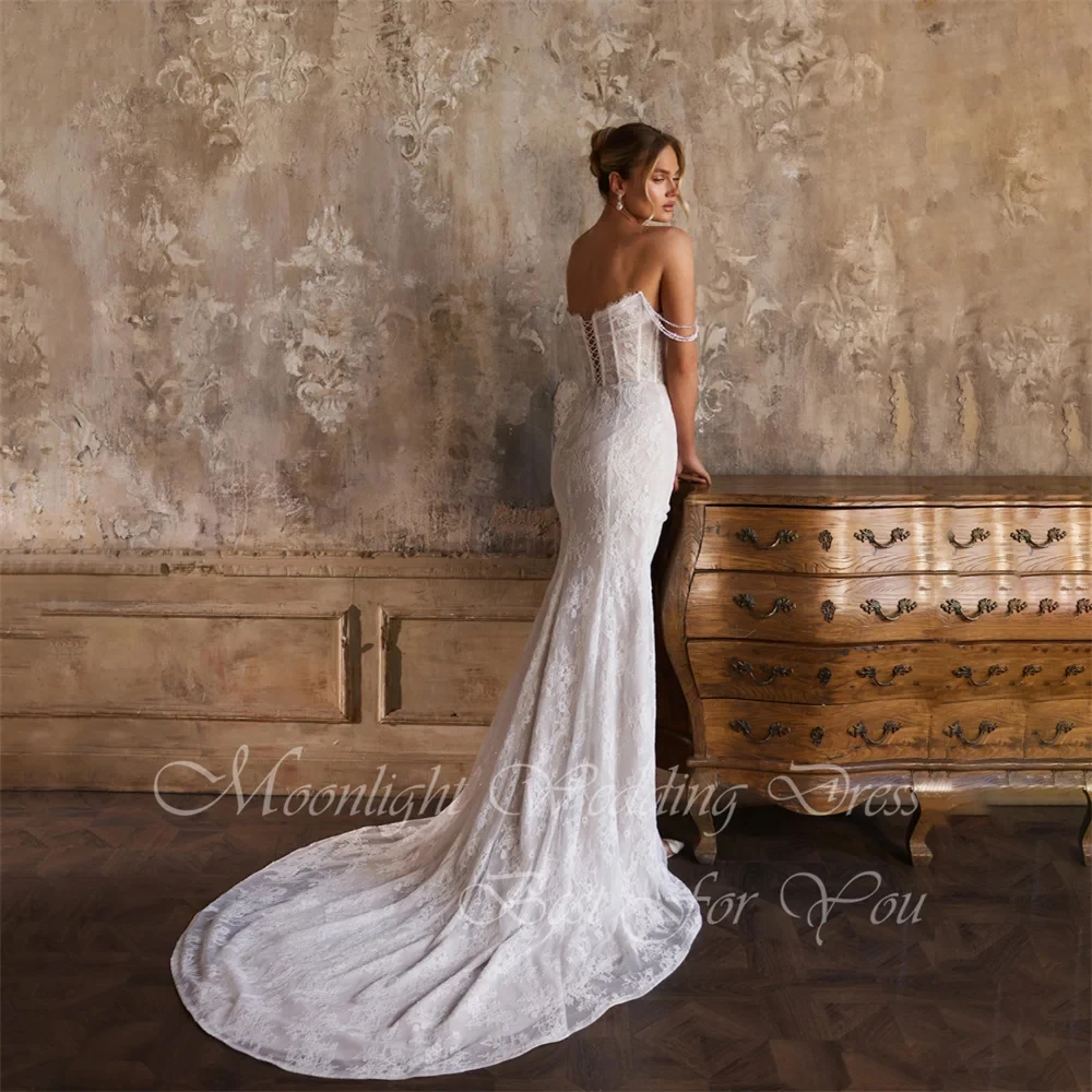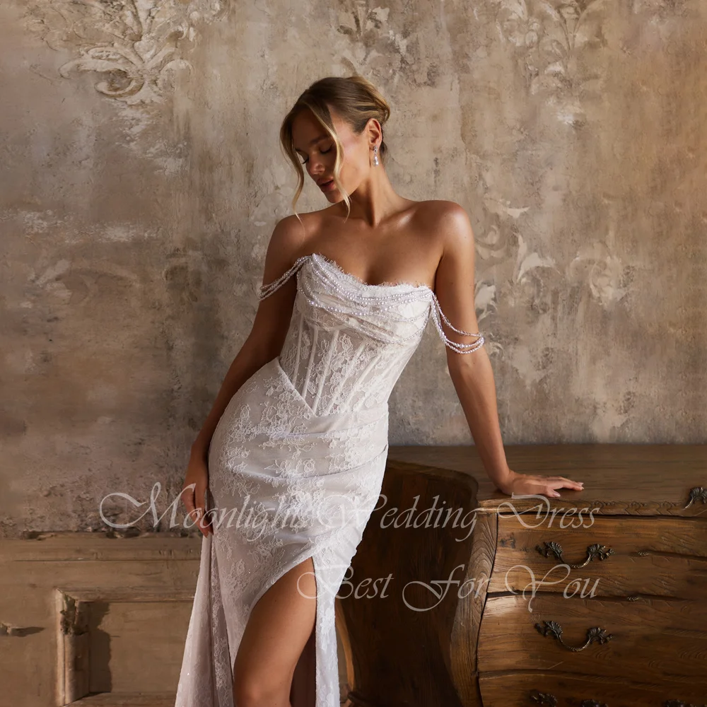 Exquisite Falte, U-Boot-Ausschnitt, Spitze, Perlen verziert, Meerjungfrau-Hochzeitskleid 2026, geteilt, schulterfrei, rückenfrei, Vestidos de Novia, individuell gestaltet - TopDealBox