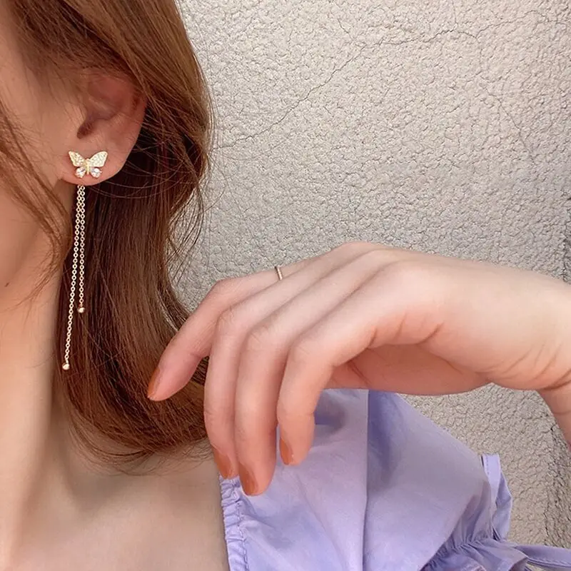 Exquisite Schmetterling Lange Quaste Ohrringe Zwei Möglichkeiten, Strass Tropfen Ohrringe Für Frauen Party Hochzeit Schmuck Mädchen Geschenke - TopDealBox