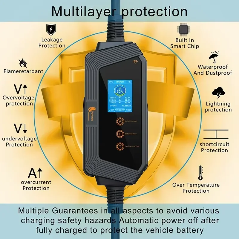 Feyree 22KW 32A 3Phase Typ2 Tragbares EV-Ladegerät Wi-Fi APP-Steuerung EVSE Ladebox Ladestation für Elektroauto-Ladegerät - TopDealBox
