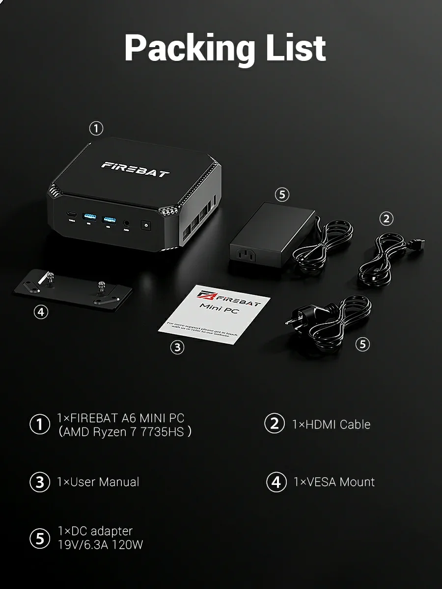 FIREBAT MINI PC A6 AMD Ryzen 7 7735HS 16GB DDR5 RAM 512GB SSD WIFI6 BT5.2 Windows 11 Tragbarer Desktop MINI-PC Gaming-Computer - TopDealBox