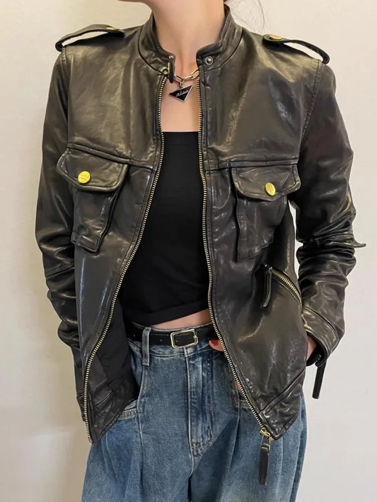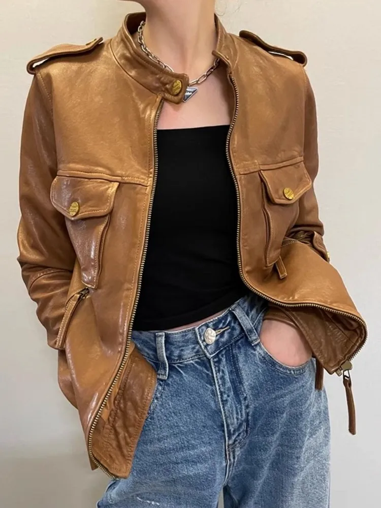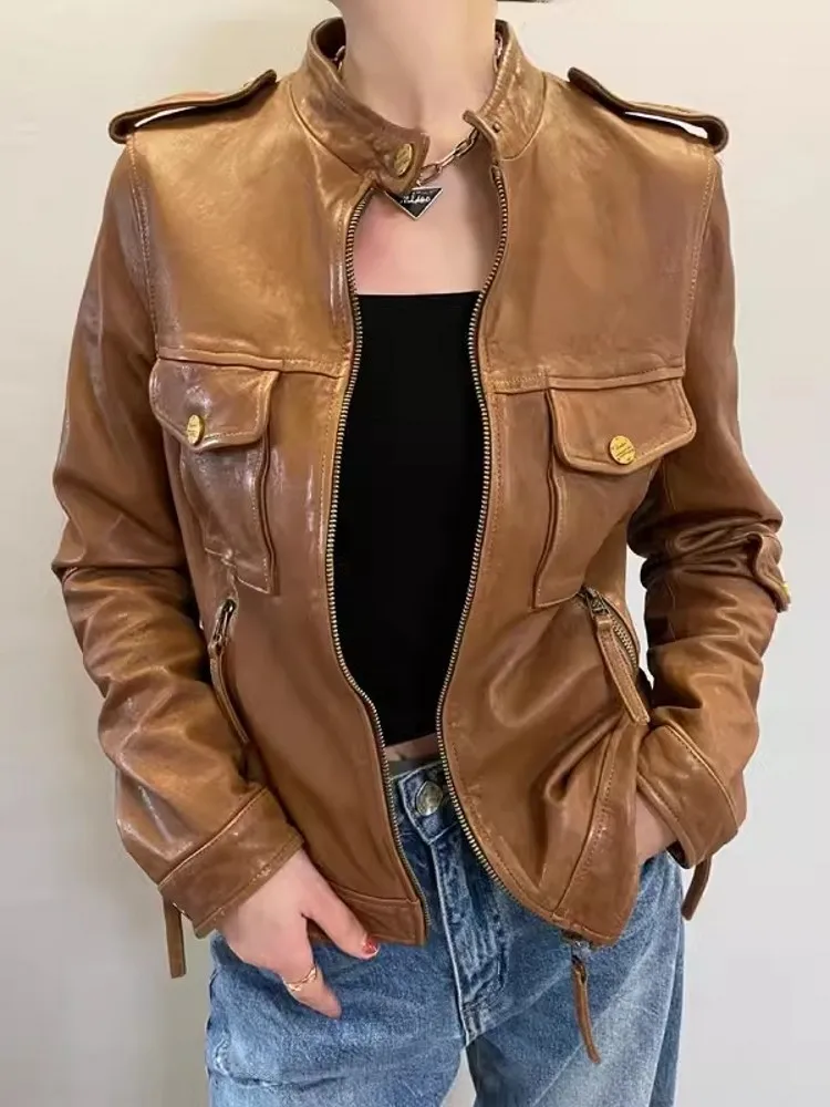 ♡Schnellansicht2024 importiert Ziege Wildleder Jacke Für Frauen Retro Stehkragen Vielseitig Abnehmen Elastische Taille Leder Mantel Chaquetas Bomber215.39 EUREUR 2116.58Heiß★★★★★5.0