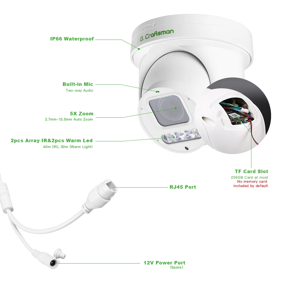 ♡SchnellansichtG.Craftsman 5X POE S-ONY 2,7-13,5 mm Objektiv 5MP 4K Zwei-Wege-Audio RTMP AI LED Überwachung Sicherheit CCTV Video88.69 EUREUR 135.61Heiß★★★★★5.0