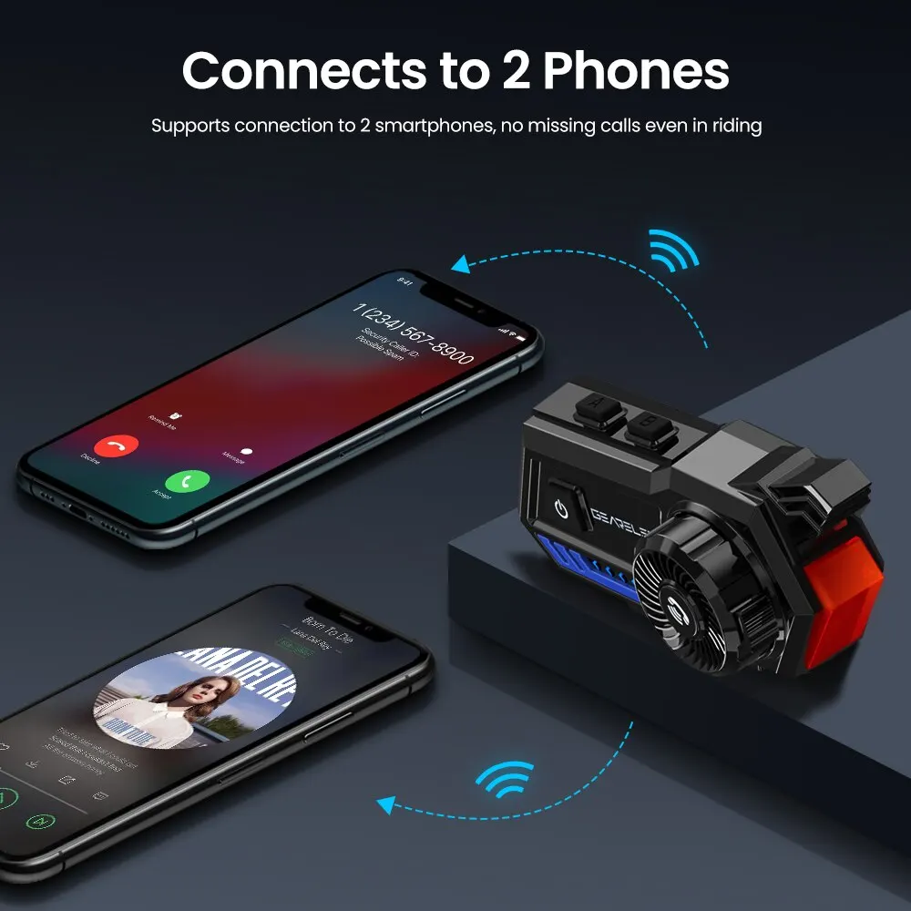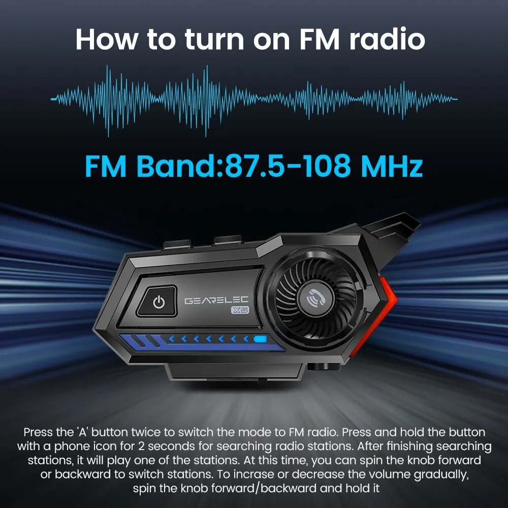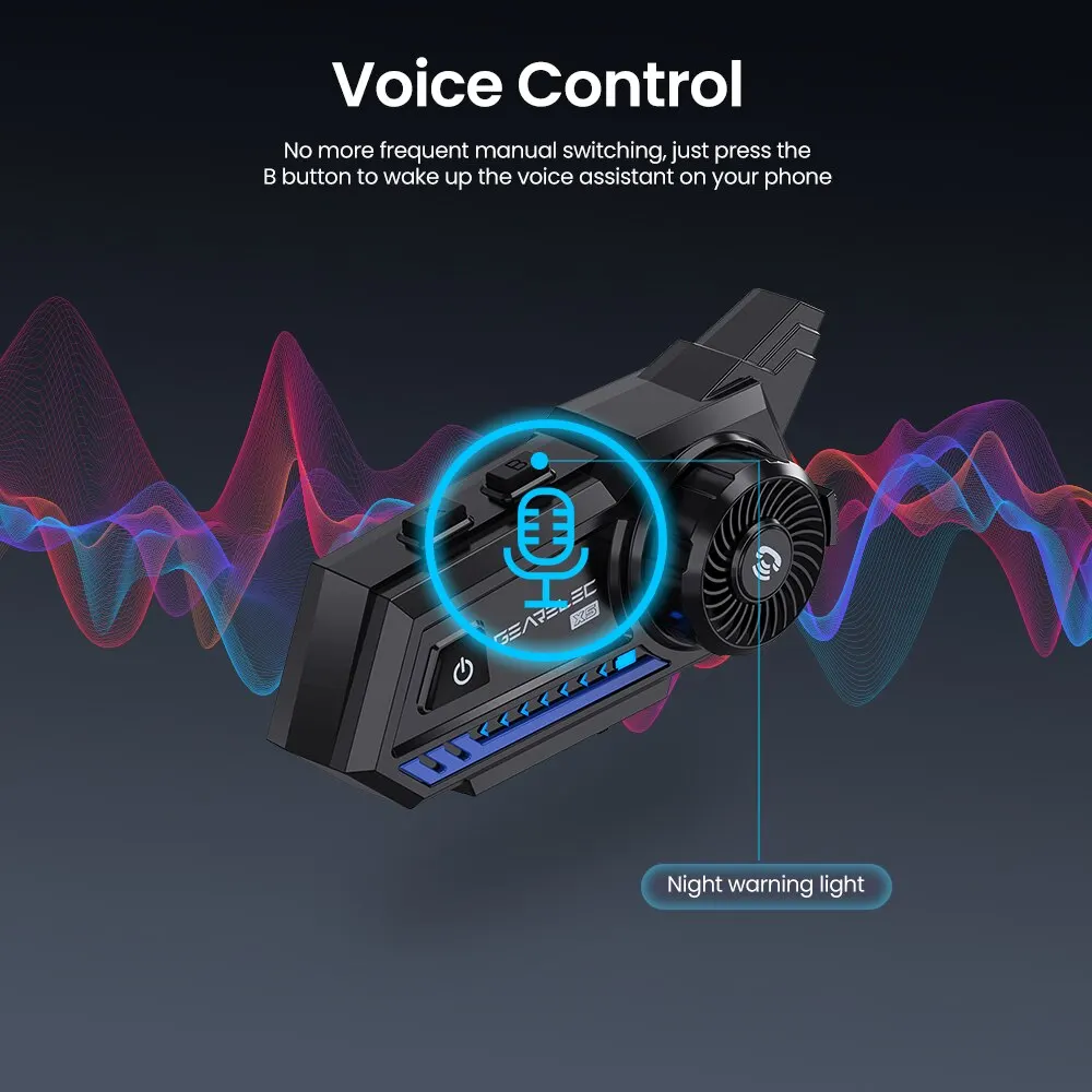 Gearelec x5 motorrad helm headset bt 5,2 wasserdichte drahtlose kopfhörer sprach steuerung roise reduktion fm radio warnleuchte - TopDealBox
