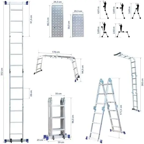 ♡Schnellansicht6,7 Meter Aluminiumleiter mit Vielseitiger Nutzung, Stabile Standleiter aus Leichtem Material, Höhenverstellbar346.39 EUREUR 2771.12Heiß