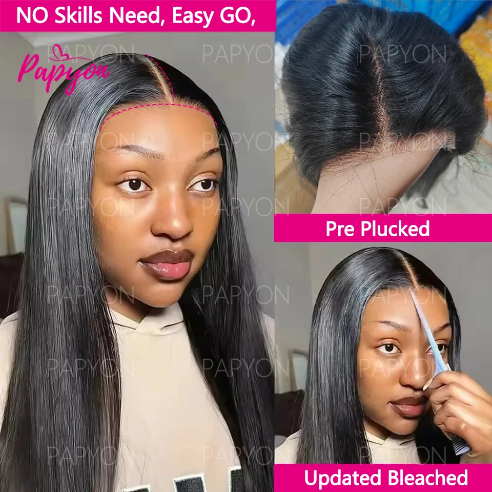 Gerade 6x4 Glueless Perücke, 4x4 Echthaar, sofort tragbar, vorgezupft, transparenter Lace Closure Frontal Perücken für Frauen, 200% Dichte - TopDealBox