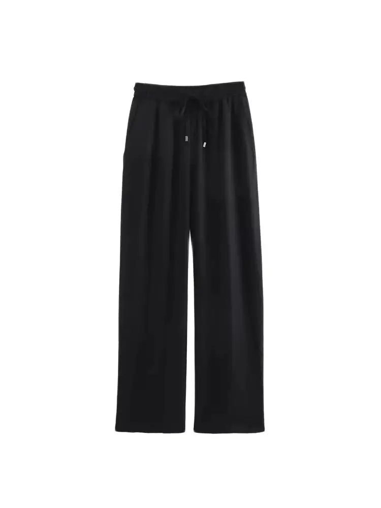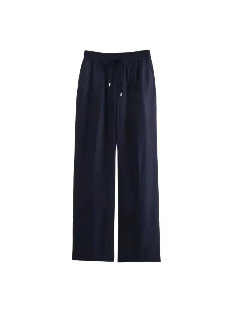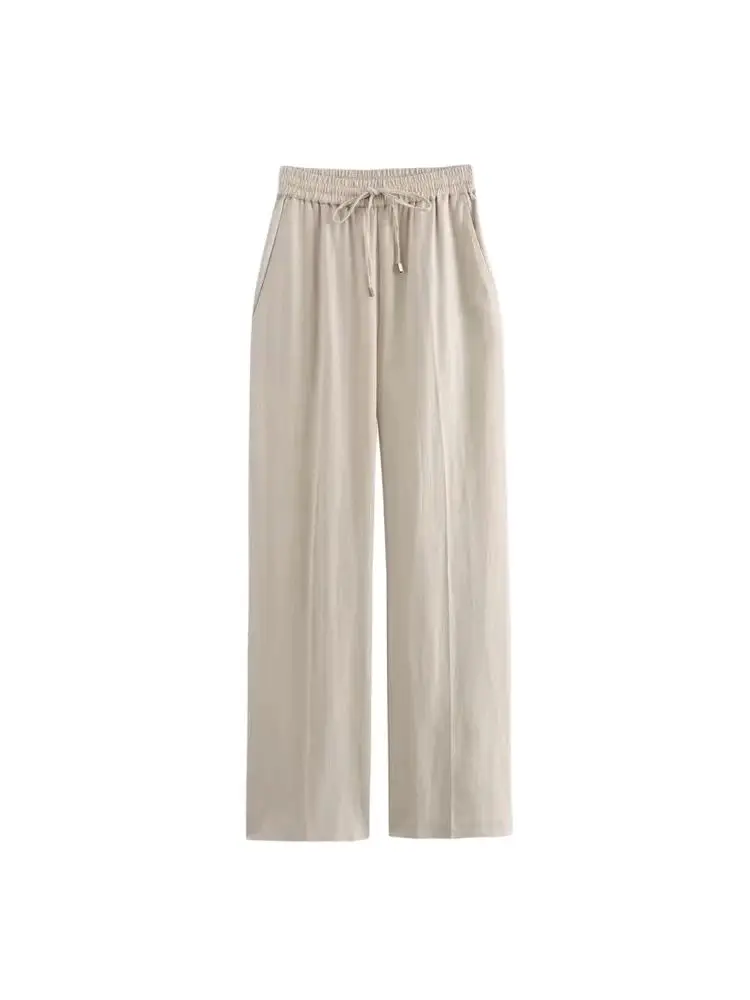 Gerade Damenhose mit Vordertaschen, hoher elastischer Bund, Kordelzug, Damenhose, schicke Mode - TopDealBox