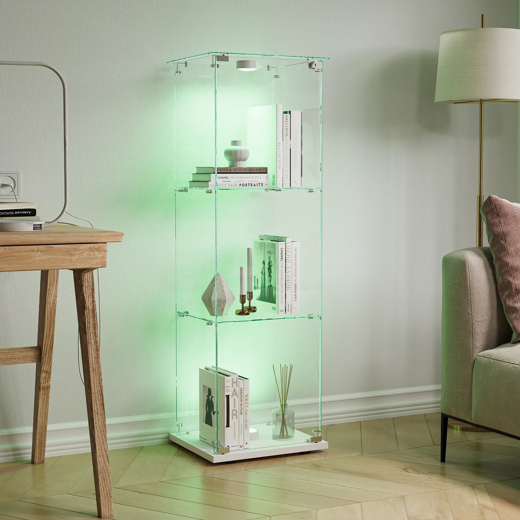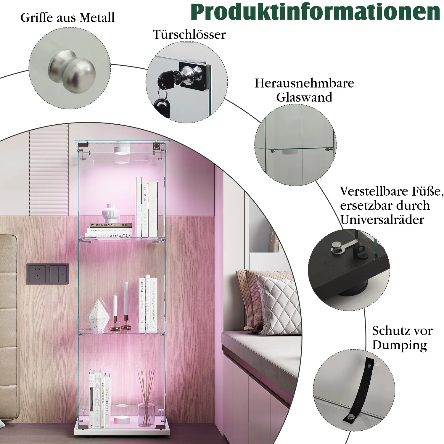 Glasvitrine 40 x 35 x 123 cm, beleuchtete Vitrine für Sammlungen, 3-lagige Vitrine mit Tür und Schloss - TopDealBox