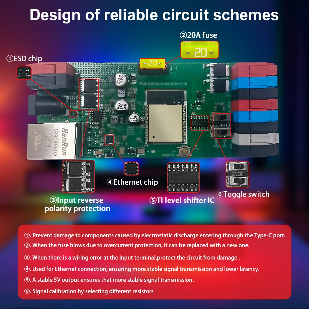 GLEDOPTO Elite ESP32 WLED LED-Streifen-Controller mit Ethernet, Musik-Synchronisation, Relais, 20A Sicherung für WS2812B WS2815 SK6812 RGB IC - TopDealBox