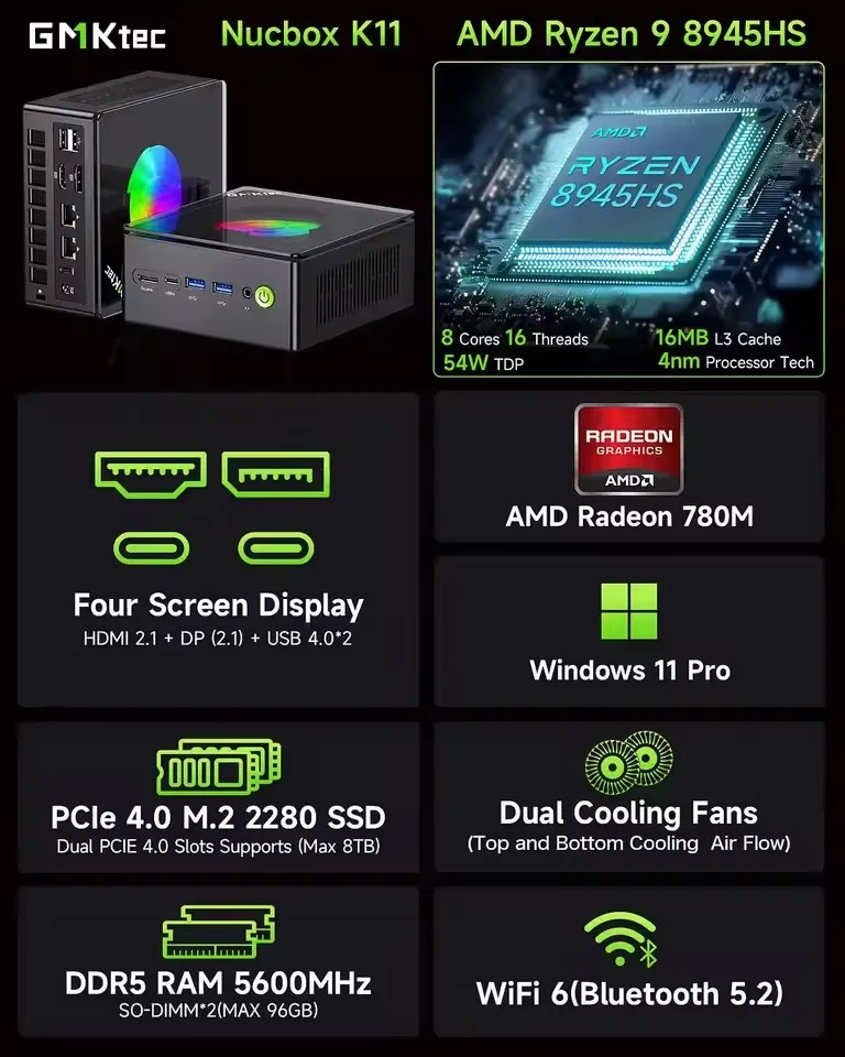♡SchnellansichtTopton Oculink Gaming Mini PC AMD Ryzen 9 8945HS R7 8845HS USB4.0 2x2.5G LAN 2xPCIe4.0 2xDDR5 Windows 11 NUC Mini Computer WiFi6360.39 EUREUR 532.47Heiß