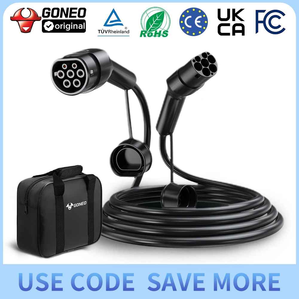 GONEO EV Ladekabel Typ 2,3 Phasen 22 kW/11 kW/7 kW, IP54 wasserdicht, PA66/TPU, 5/7/10 m Längen für schnelles Laden EV/PHEV Hybrid - TopDealBox