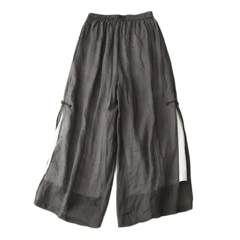 Graue Baumwolle Leinen lässig elastisch hohe Taille mit Futter Damen hose weites Bein knöchel lange Hose für Damen bekleidung Mode - TopDealBox