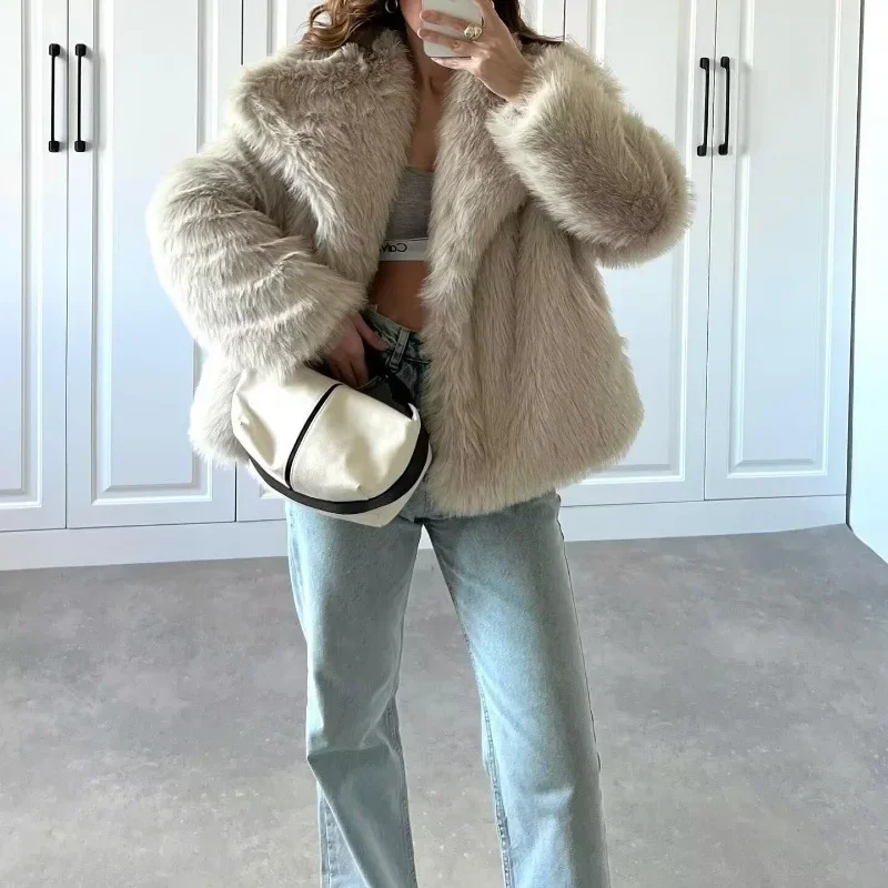 ♡SchnellansichtLautaro Herbst Winter Übergroßen Lose Beiläufige Luxus Weichen Dicken Warmen Haarigen Faux Fuchs Pelzmantel Frauen Langarm Flauschigen Jacke 202453.99 EUREUR 90.80Heiß★★★★★★4.8