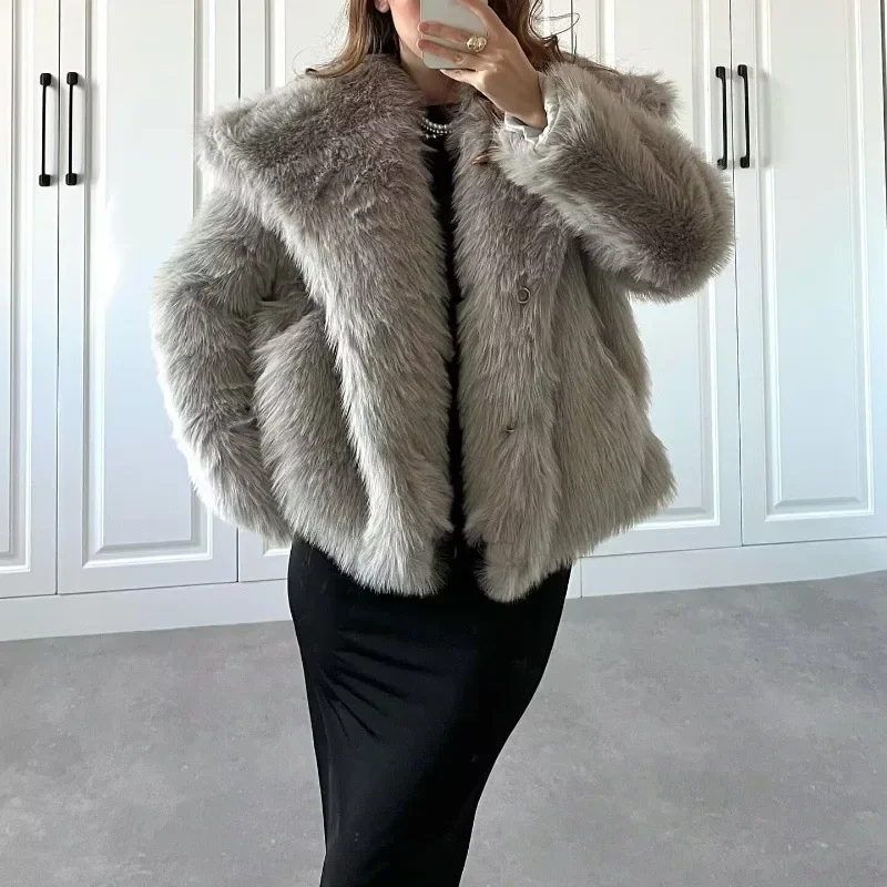 ♡SchnellansichtLautaro Herbst Winter Übergroßen Lose Beiläufige Luxus Weichen Dicken Warmen Haarigen Faux Fuchs Pelzmantel Frauen Langarm Flauschigen Jacke 202453.99 EUREUR 90.80Heiß★★★★★★4.8