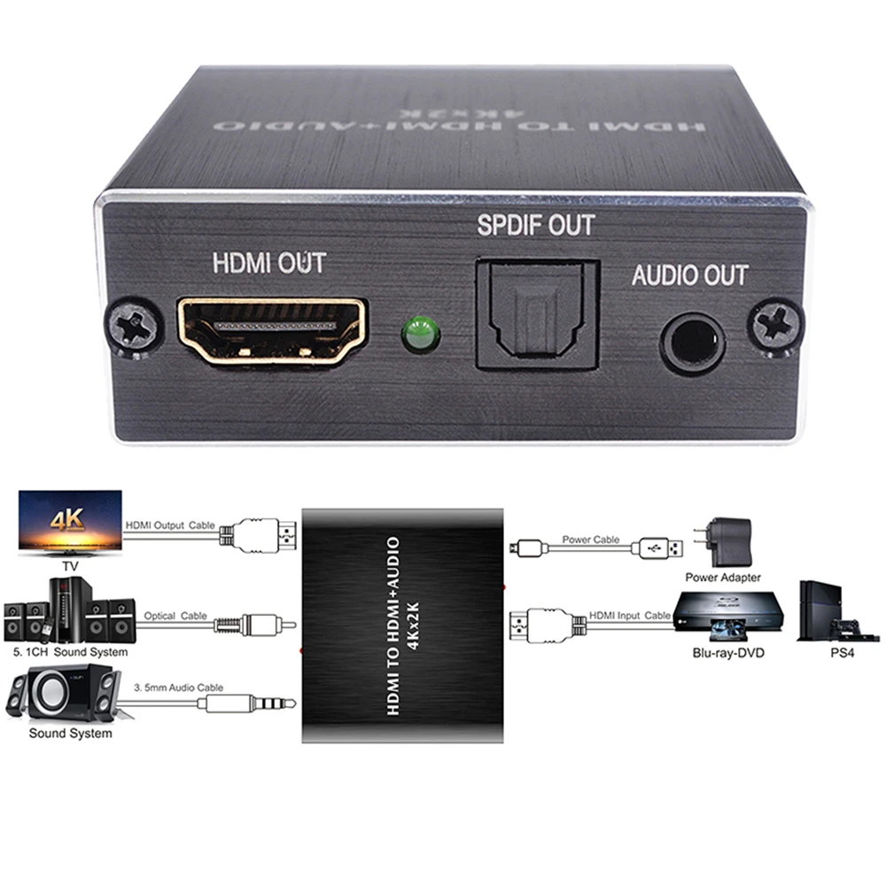 HDMI-kompatibler Audio-Extraktor kompatibler Audio-Extraktor Stereo-Extraktor Konverter optischer Toslink SPDIF 3,5mm 4k x 2Kaudi