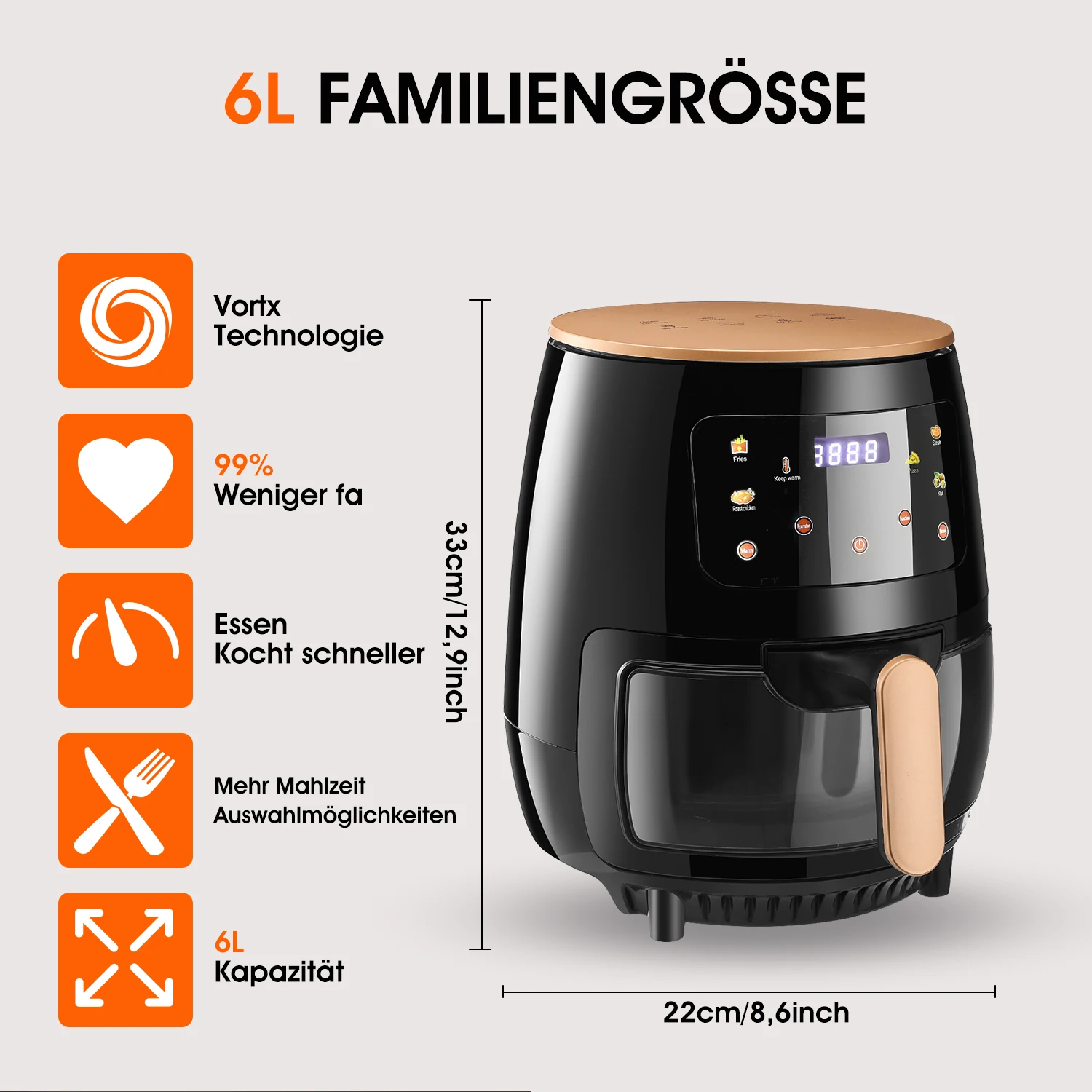 ♡SchnellansichtSichtbare Heißluftfritteuse, 9 l, große Heißluftfritteuse, 10 voreingestellte Funktionen, Braten, Backen, Dörren, Aufwärmen, leise, antihaftbeschichtet41.79 EUREUR 1091.10Heiß★★★★★★4.6