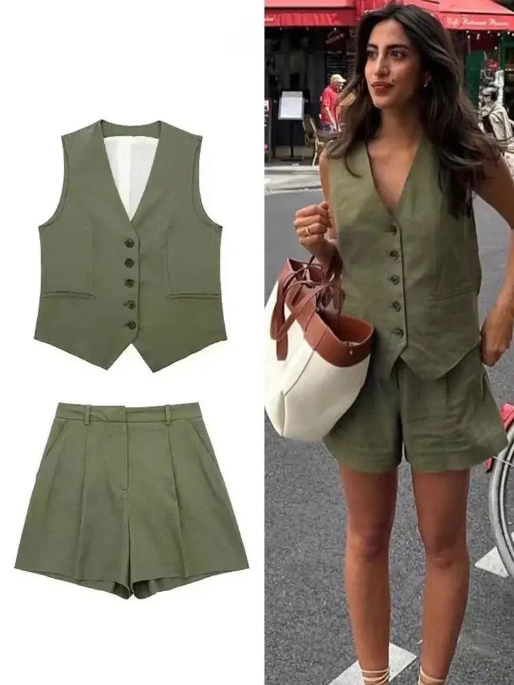 ♡SchnellansichtHH Frauen Elegante Feste Weste Hose Sets Einreiher V-ausschnitt Weste Top + Hohe Taille Dünne Shorts Dame Büro Tragen anzüge13.79 EUREUR 226.21Heiß★★★★★4.3