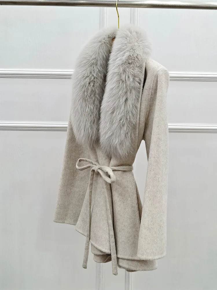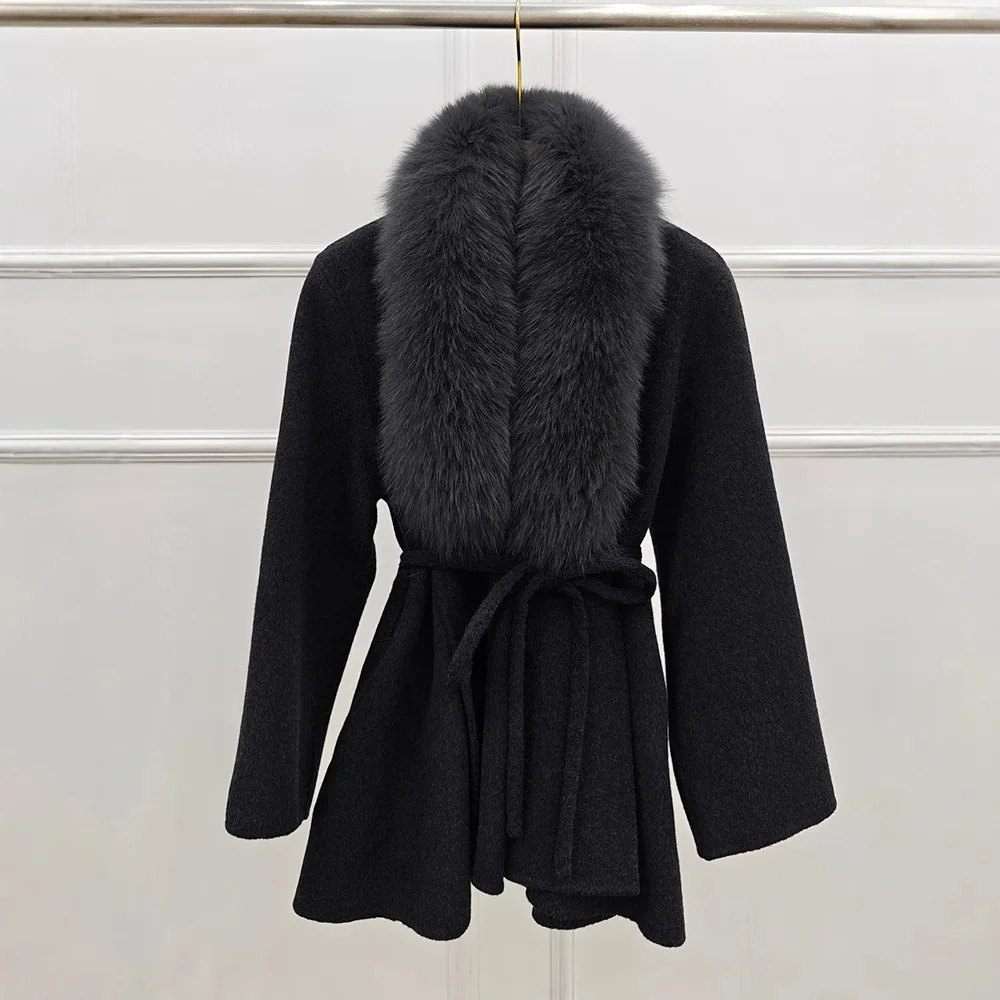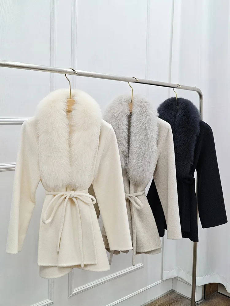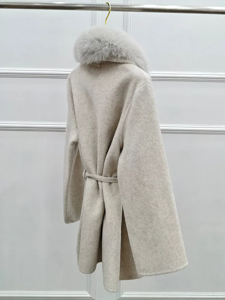 High-End-Winter-Wollmäntel für Damen, doppelseitiger Kaschmirmantel mit echtem Pelzkragen und Gürtel, luxuriöse Damenjacke, warme Kleidung für den Herbst - TopDealBox