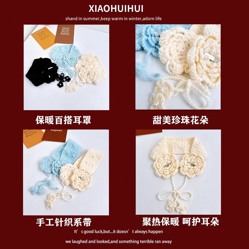 ↑ Ins Mori süße Blumen-Design gestrickte Schnür-Ohrenschützer für Frauen Herbst und Winter Reisen warme vielseitige süße Pullover-Hüte - TopDealBoxWeicher Plüsch-Ohrwärmer, Winter, warm, für Damen und Herren, modisch, einfarbig, Ohrenklappe, Outdoor, Kälteschutz, Ohrenschützer, Ohrabdeckung