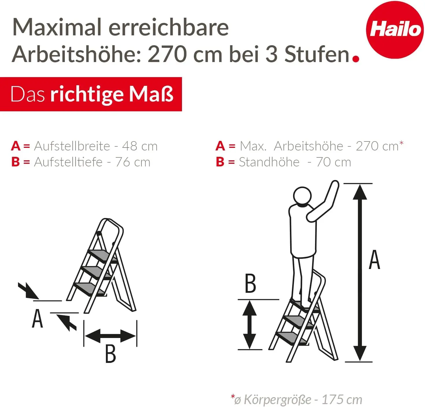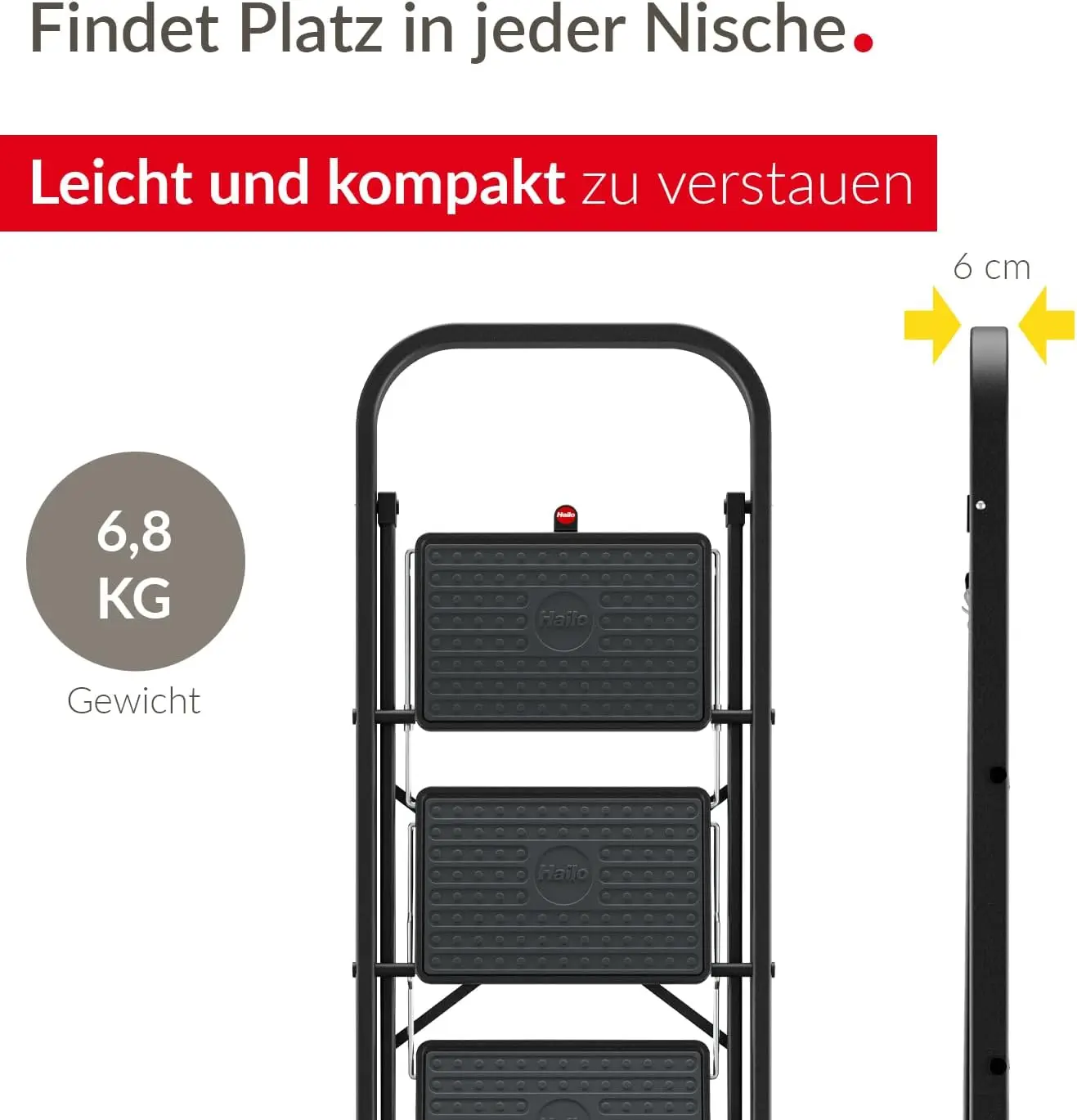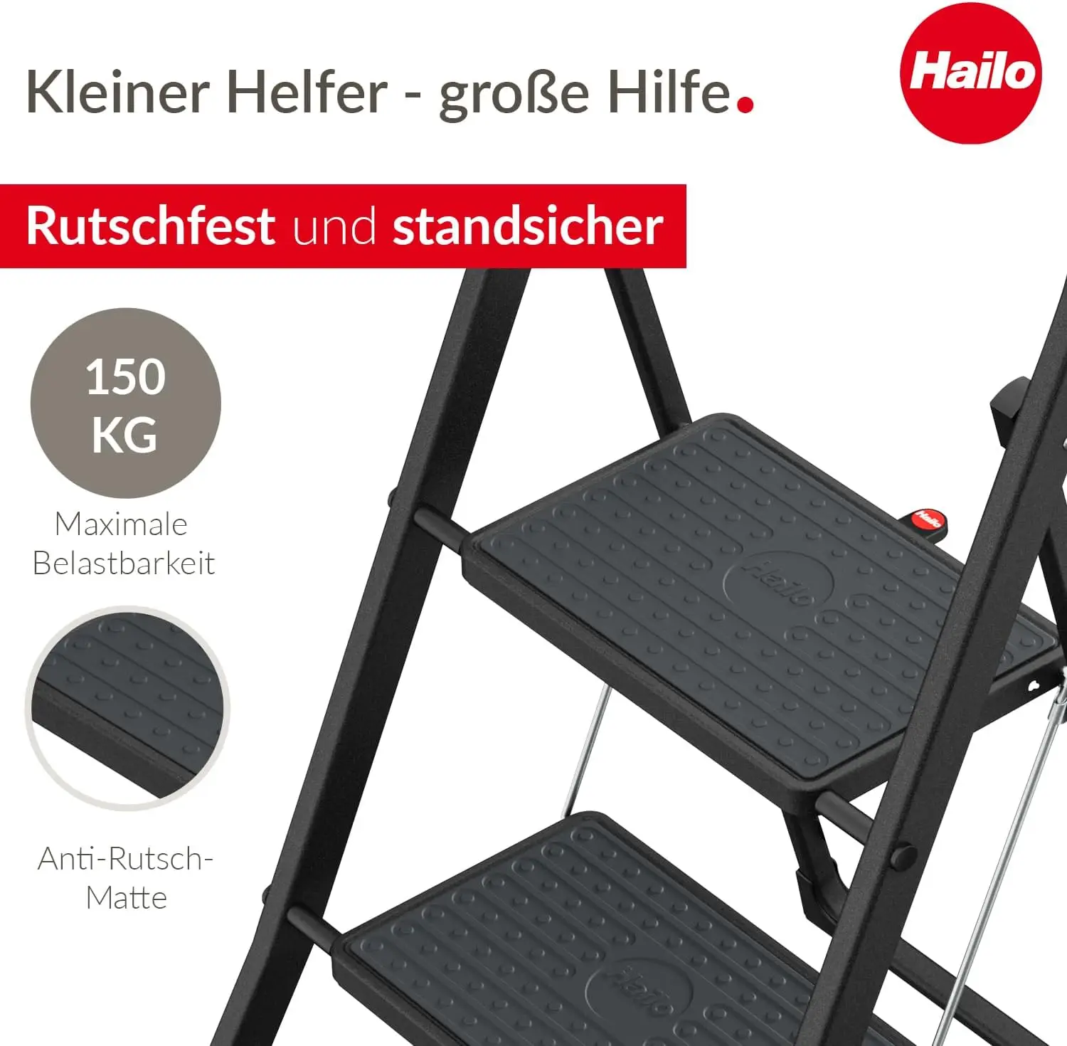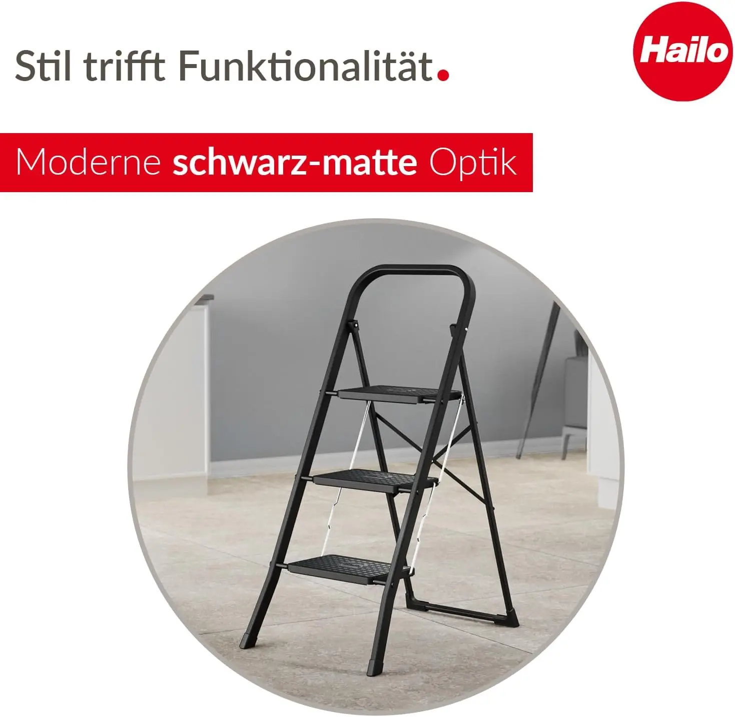 K44 StandardLine Klapptritt – 3-stufige Stahltrittleiter mit großen Stufen und Anti-Rutsch-Matten – Arbeitshöhe bis 2,69 m - TopDealBox