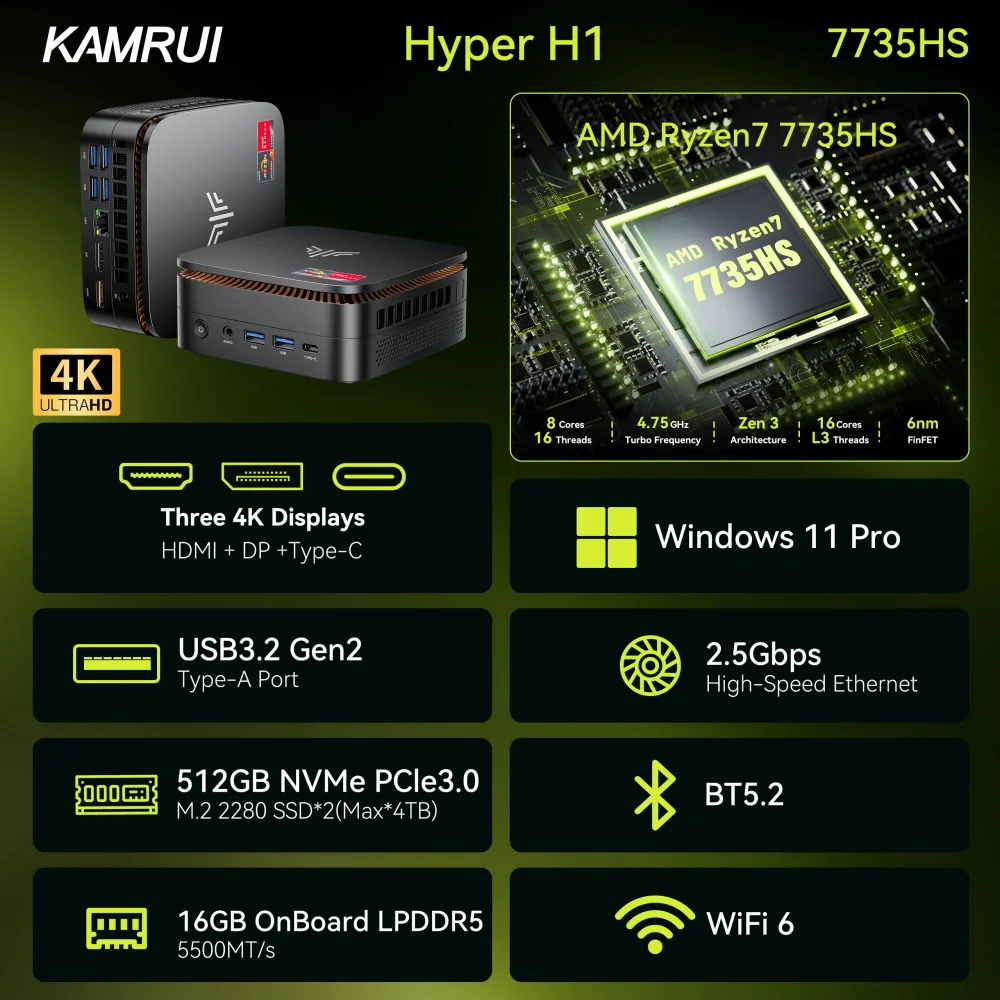 ♡SchnellansichtKAMRUI Mini-PC AMD R7 6800H 32GB LPDDR5 6400MHz 512GB M.2 PCIeSSD Max 4,7GHz Win11pro WiFi6 BT5.2 4K Desktop-Computer Gaming-PC429.39 EUREUR 5148.87Heiß★★★★★★3.9