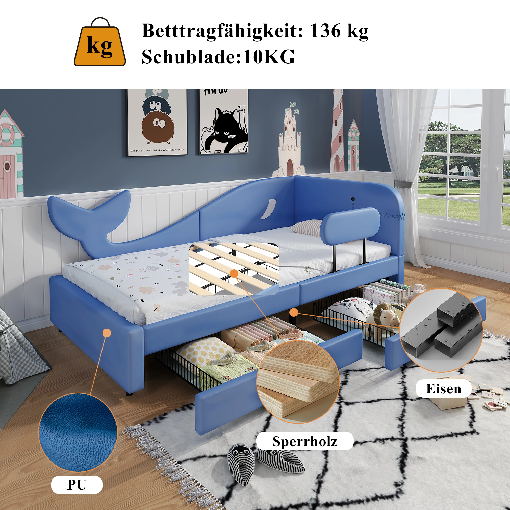 ♡SchnellansichtRosahqnda Kinderbett Einzelbett 90/140x200cm Mädchenbett mit LED-Beleuchtung, Crown Shell Heabboard Einzelbett Rest ohne Matratze135.11 EUREUR 289.56Heiß★★★★★★4.9
