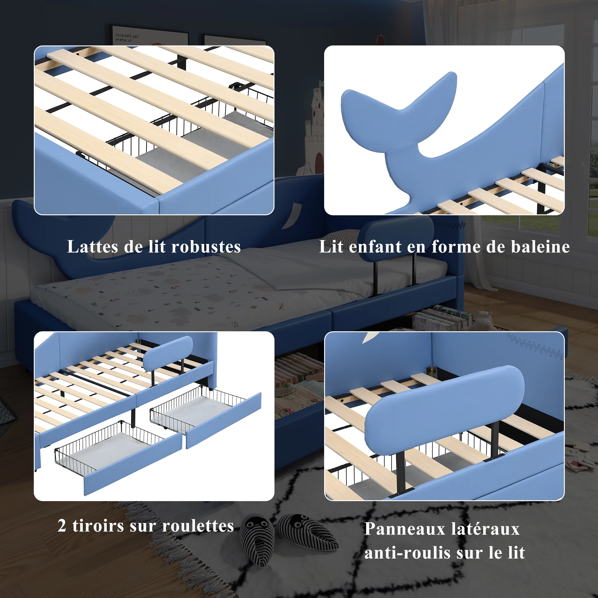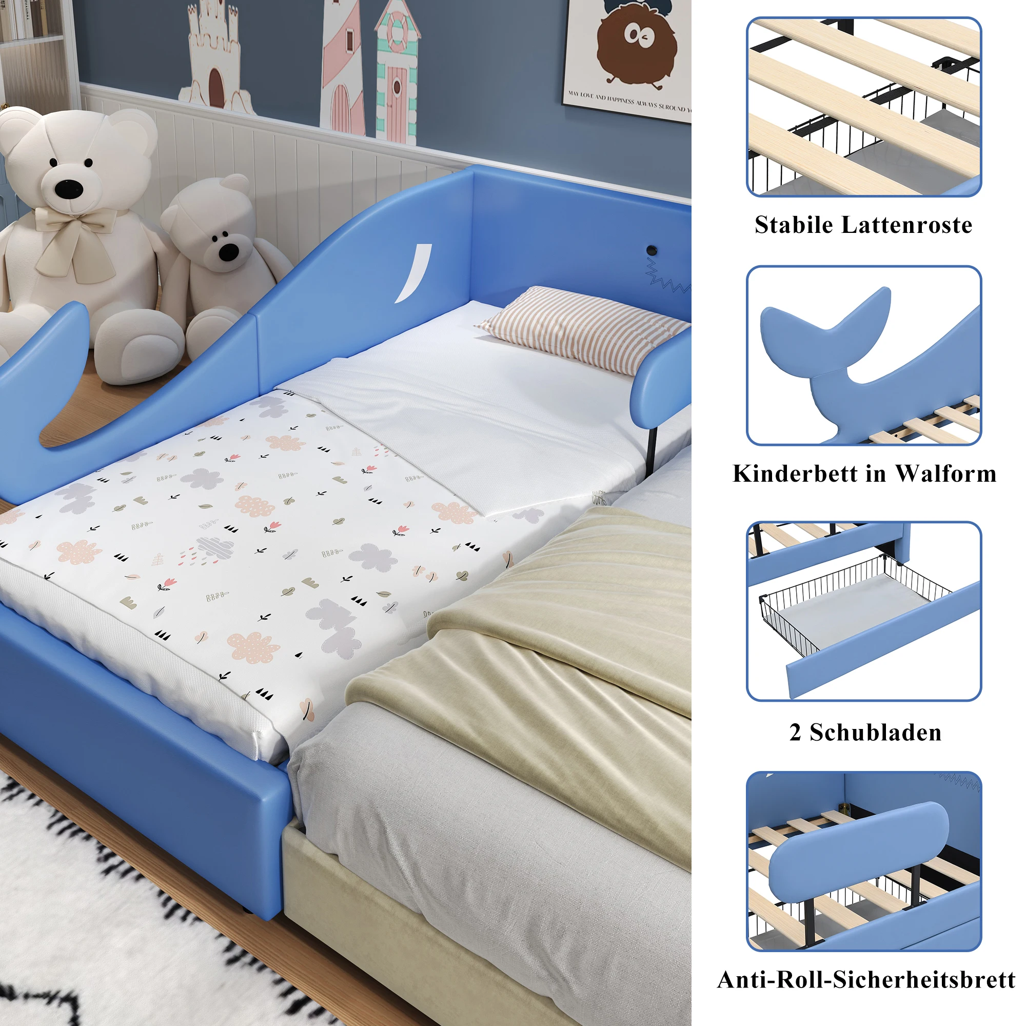 ♡SchnellansichtEtagenbett 90x200cm mit Sichere Bettgitter,Kinderbett mit rausfallschutz,Stauraumbett mit 3Schubladen auf Rollen396.88 EUREUR 821.22Heiß